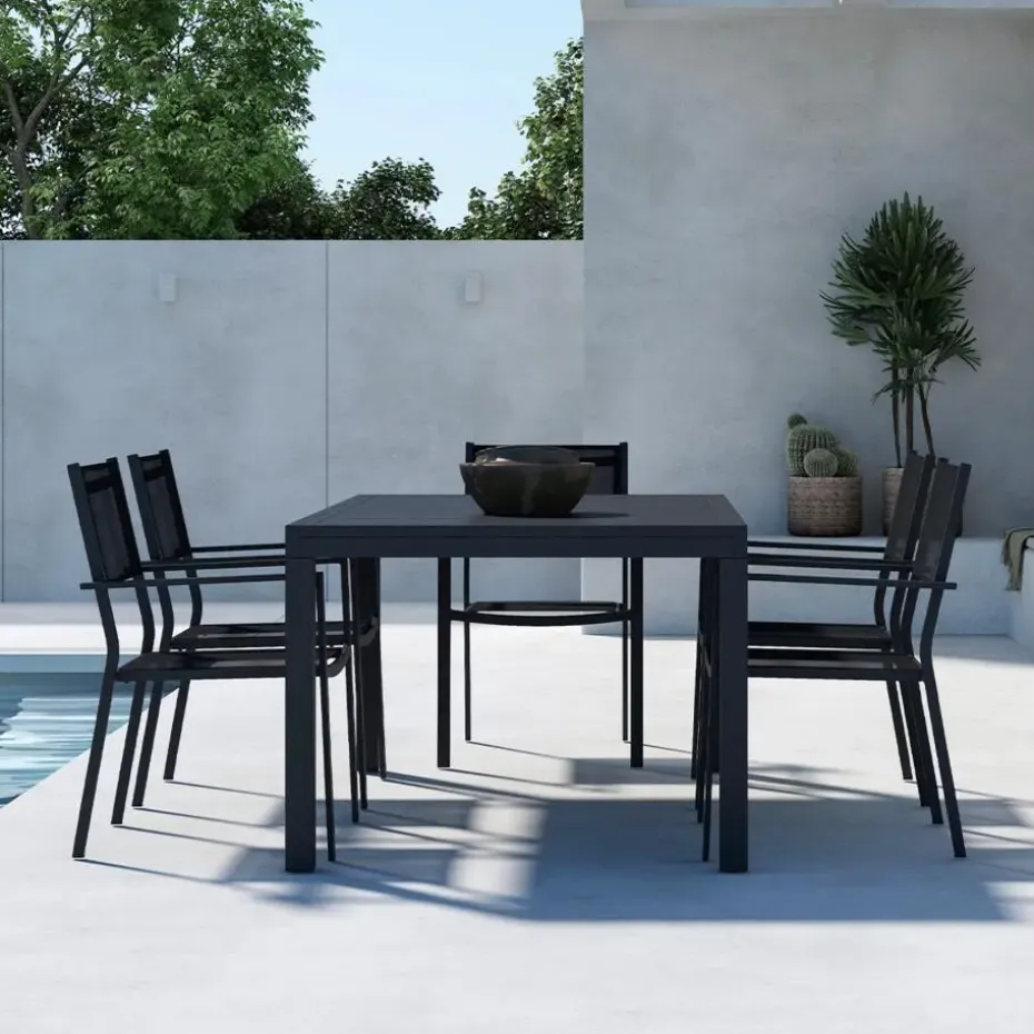 Of je nu met z’n vieren bent of een grote groep ontvangt, Grace groeit moeiteloos mee. Het extra blad zit netjes opgeborgen onder het tafelblad en komt met één soepele draai omhoog op de juiste hoogte. Geen gedoe met losse delen dus! Het stevige, onderhoudsvriendelijke aluminium en het eigentijdse design maken Grace tot een favoriet voor tuin, terras of veranda. Verkrijgbaar in verschillende kleuren, waaronder zwart en beige – zo kies je altijd de stijl die bij jouw buitenruimte past.