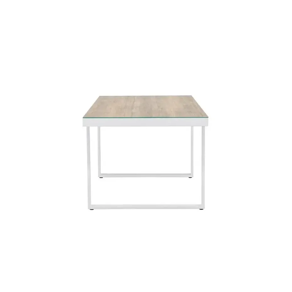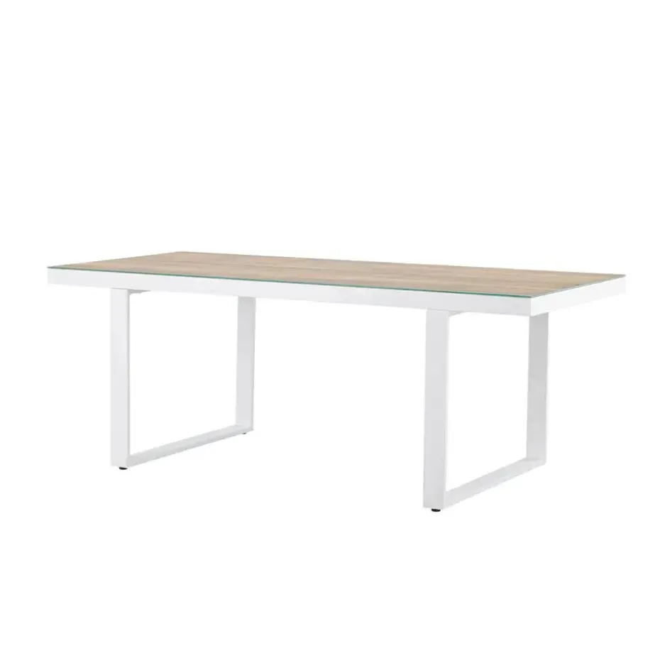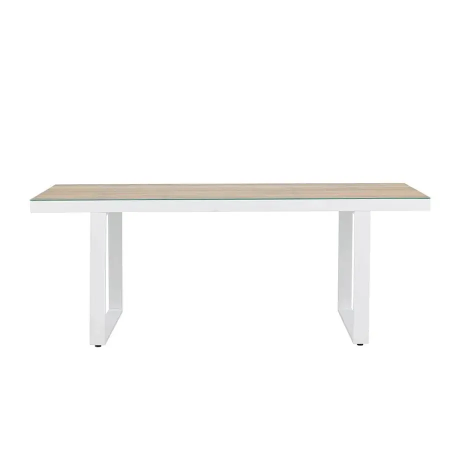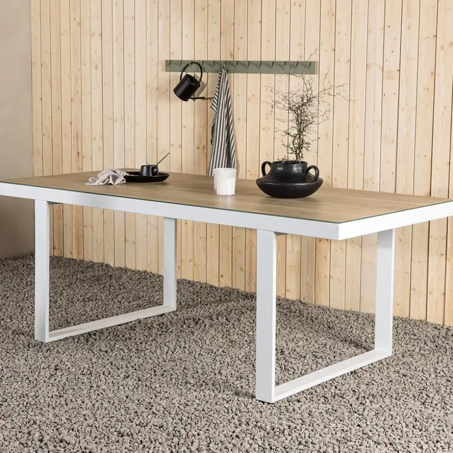 Deze moderne eettafel voor buiten is de perfecte keuze voor een combinatie van stijl en functionaliteit. De Mathijs tuintafel valt op tussen de andere tuinmeubels en zorgt voor een stijlvolle zitplek in de achtertuin. De tuintafel heeft een wit aluminium frame en een tafelblad van glas met houtlook afwerking. Deze combinatie van materialen zorgt ervoor dat de tuintafel een moderne en industriële uitstraling heeft. Dankzij het aluminium frame vergt deze grote tuintafel weinig onderhoud, is hij bestand tegen roest en ben je verzekerd van een duurzame keuze. Met de ruime afmetingen is er plek voor minimaal 6 stoelen aan tafel. Of het nu gaat om zomerse diners in de koele avondlucht of een ontbijtje in de ochtendzon, de Mathijs tuintafel in het wit biedt de perfecte setting voor elke gelegenheid.