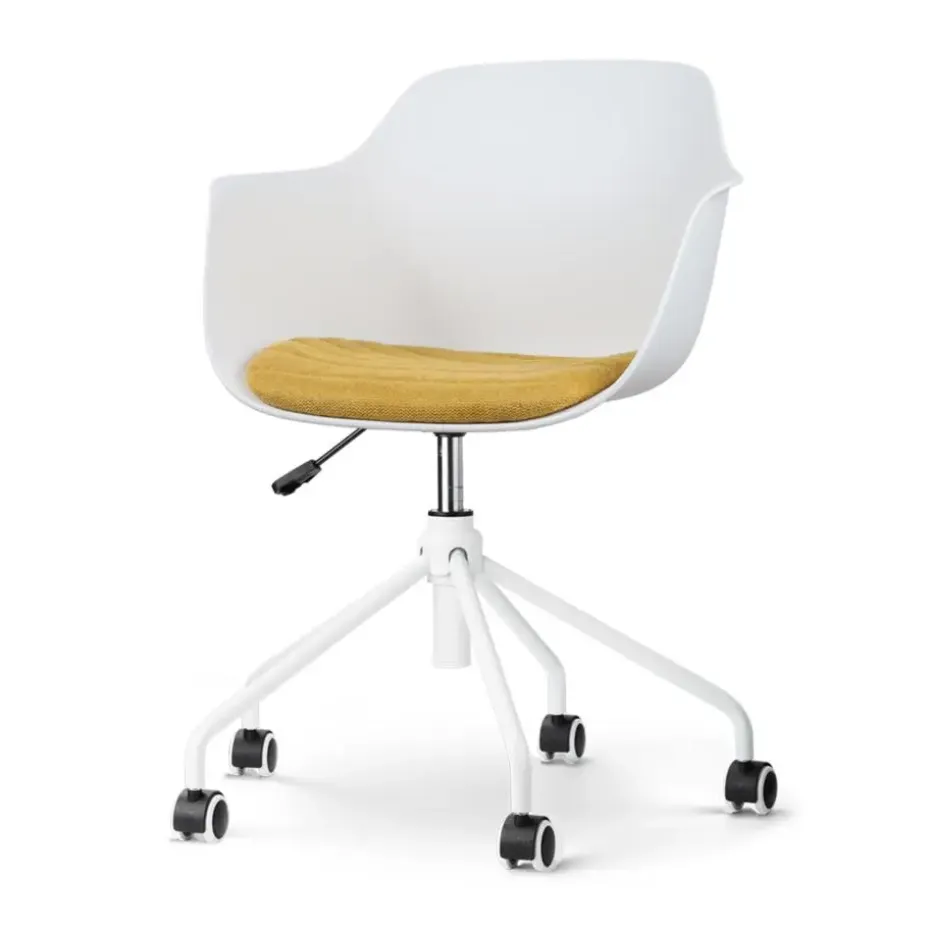 Nolon Nout-Liz Bureaustoel Wit – Okergeel Kussen – Wit Onderstel