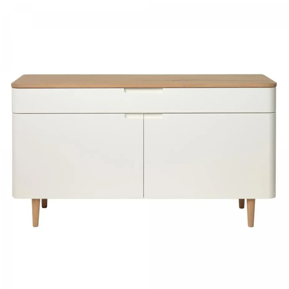 De Rune dressoir is een stijlvol meubelstuk dat subtiel de kleuren wit en naturel combineert. Met zijn elegante design en vier soepele poten past dit dressoir perfect in elk interieur. Het bevat twee ruime lades die ideaal zijn voor het opbergen van verschillende spullen. Voeg een persoonlijke touch toe met accessoires om het helemaal eigen te maken. Met een lengte van 140 cm is dit dressoir gemaakt van hoogwaardig eikenhout in een naturel en witte afwerking. Voeg wat stijl toe aan je huis met de Rune dressoir.