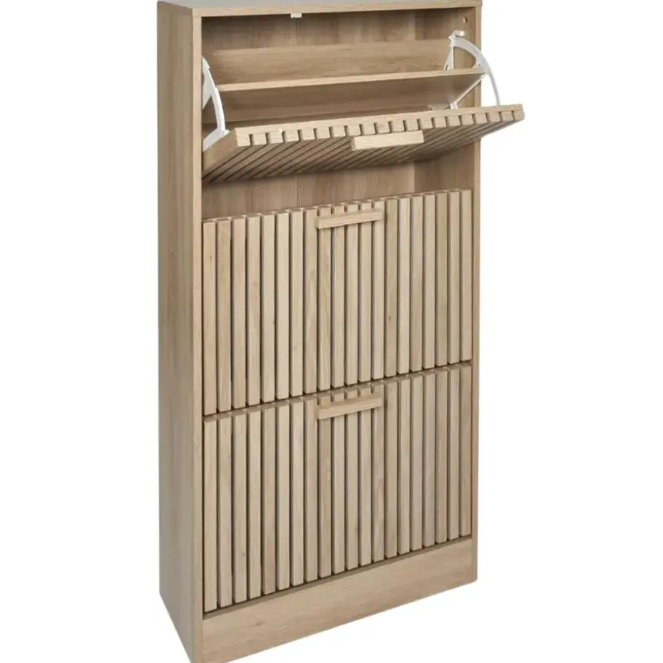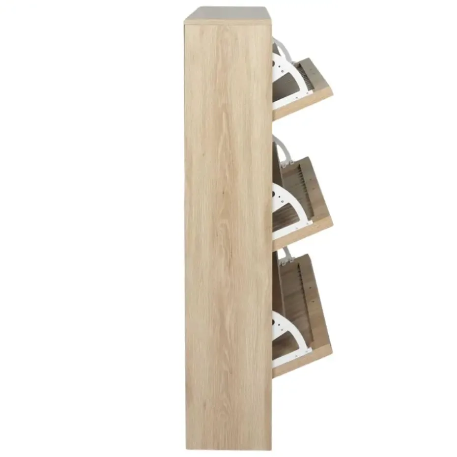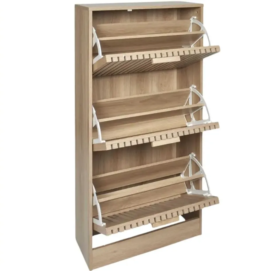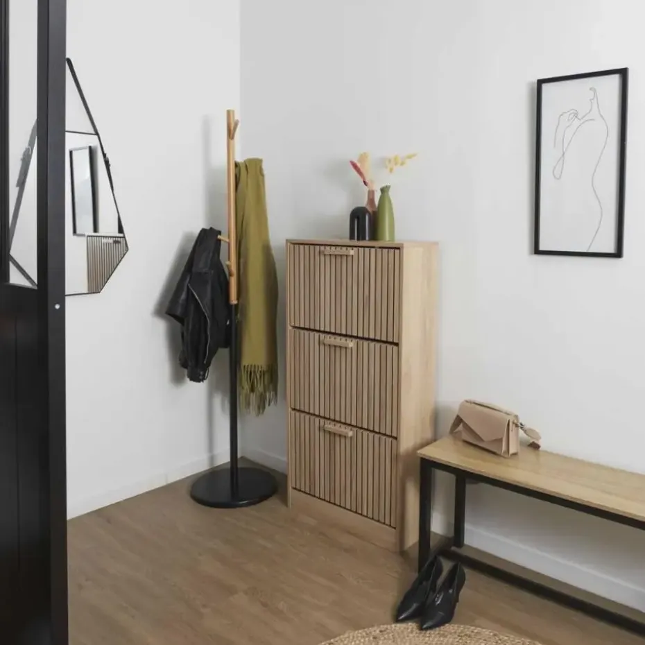 Houd je schoenen georganiseerd en je ruimte netjes met de Nordix schoenenkast. Deze bruine schoenenrek, uitgerust met drie lades, biedt een slimme en stijlvolle oplossing voor het opbergen van je schoenen en accessoires. Het moderne ontwerp en de duurzame constructie maken deze kast een functionele aanvulling op elke entree of garderobe.