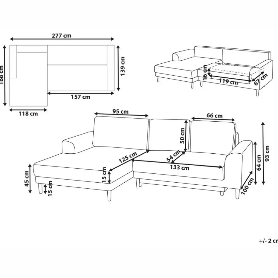 Belangrijkste eigenschappen: Uitstekende plek om te ontspannen, Modern design, Past bij vele interieurstijlen, Hoogwaardige kwaliteit stoffering, Robuust frame, Extra opbergruimte, Rugkussens met verwijderbare hoezen, Beschermdoppen voor oppervlaktebescherming