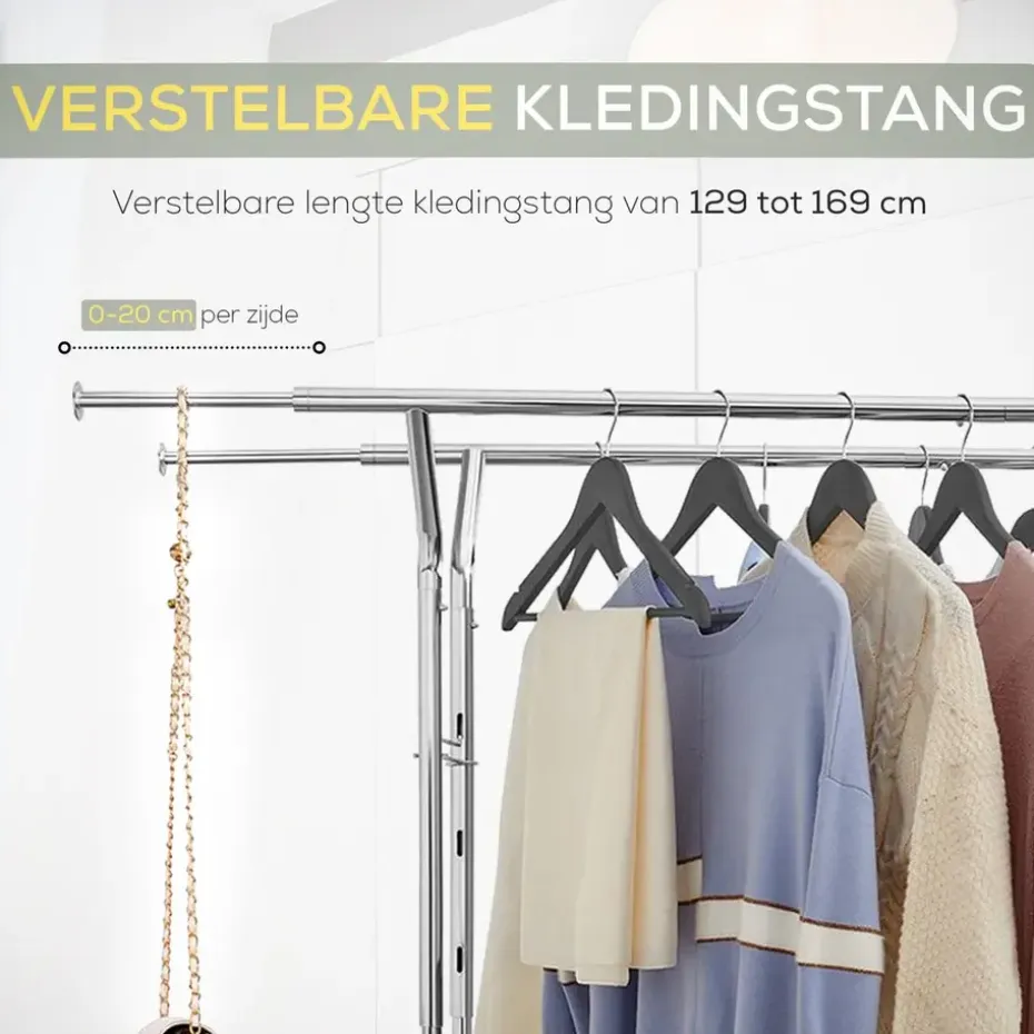 Uitschuifbaar van 92 tot 132 cm voor meer hangruimte.