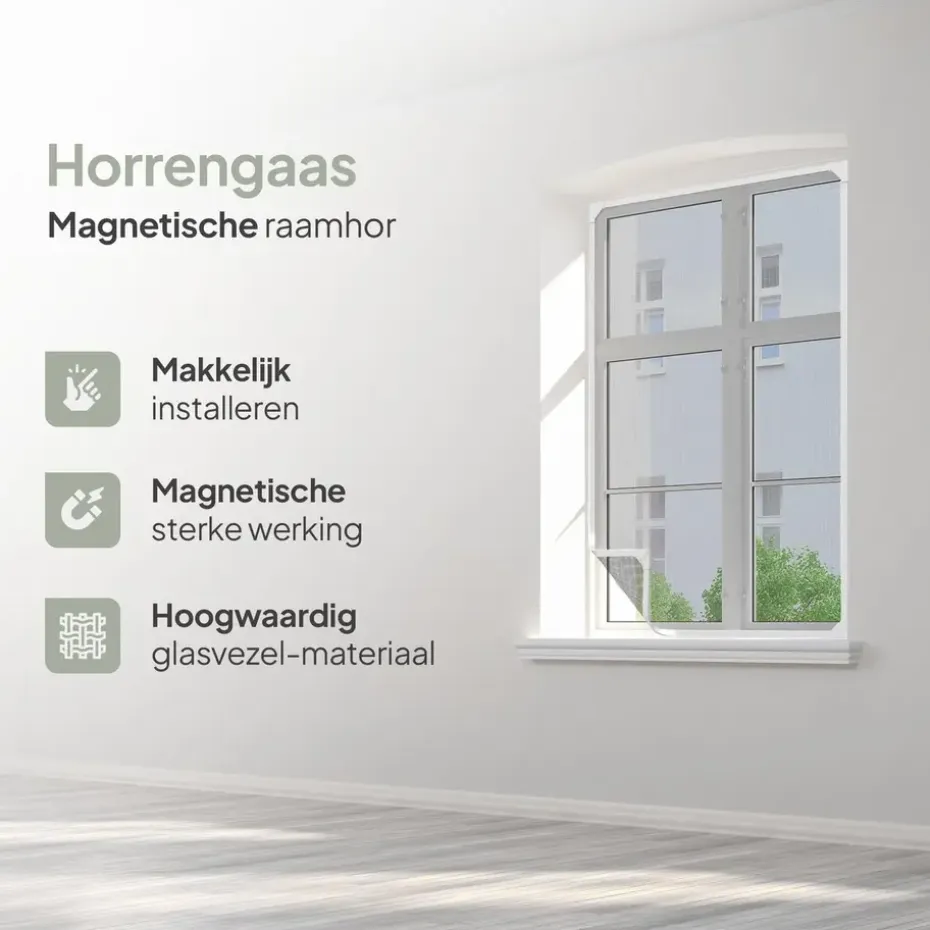 Niets is vervelender dan in je bed liggen en het gezoem van een mug of vlieg horen. Maar slapen met een raam dicht terwijl het heel warm is ook geen uitkomst. Wij hebben hiervoor DE oplossing. Onze magnetische raamhor houdt de muggen buiten en is ook nog eens supermooi afgewerkt. Omdat deze magnetisch is kunnen we de ramen makkelijk opendoen en hoef je alleen de hor los te laten waardoor de hor automatisch sluit.