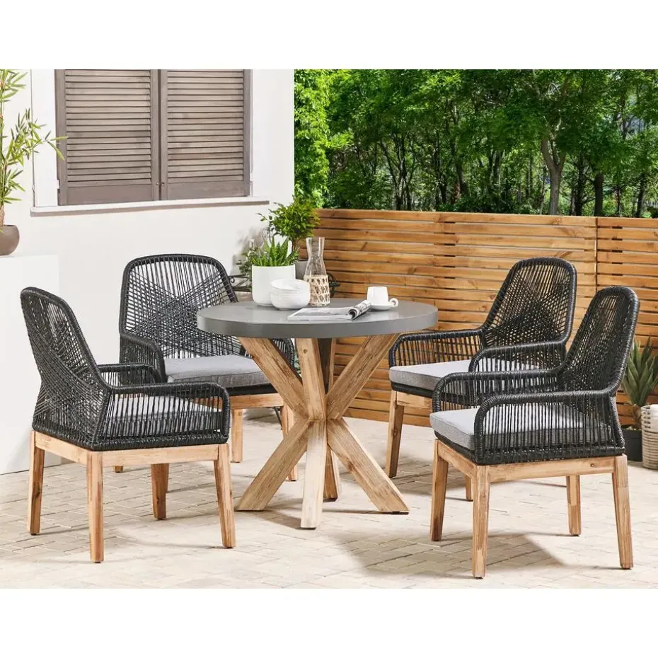 OLBIA - Tuinset voor 4 Rond - Grijs/Zwart - Vezelcement
