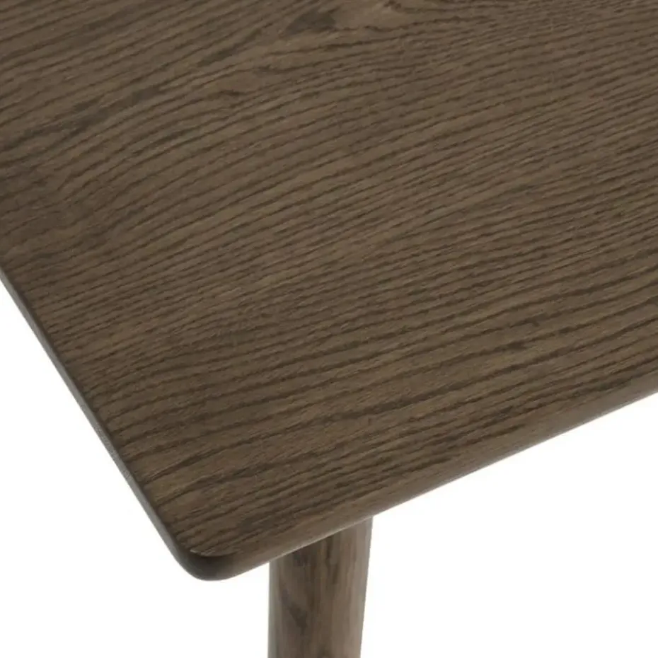 De poten van de eettafel zijn gemaakt van massief eikenhout en het tafelblad is gemaakt van hout met een laag eikenfineer. De schuine poten zorgen ervoor dat de eettafel een retro uitstraling krijgt, en door het natuurlijke materiaal past de Boas tafel helemaal bij een Scandinavische inrichting. De eettafel is met 90 cm te verlengen door aan de zijkanten een verlengstuk te plaatsen. Deze zitten niet bij de tafel inbegrepen en zijn los bij te bestellen. De Boas eettafel is twee verschillende kleuren en afmetingen verkrijgbaar.