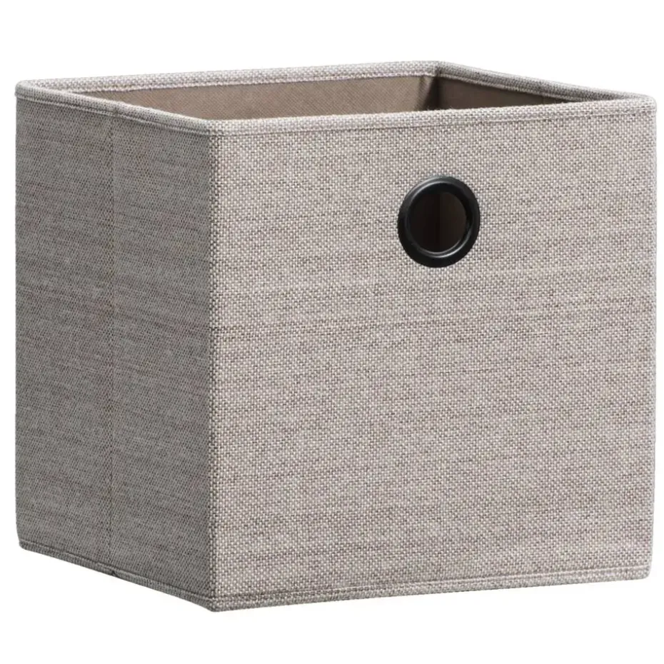 Opbergbox Kenzi is taupekleurig en heeft een afmeting van 31x31x31 cm. Opbergbox Kenzi is een praktische opbergdoos gemaakt van linnen en polyester.