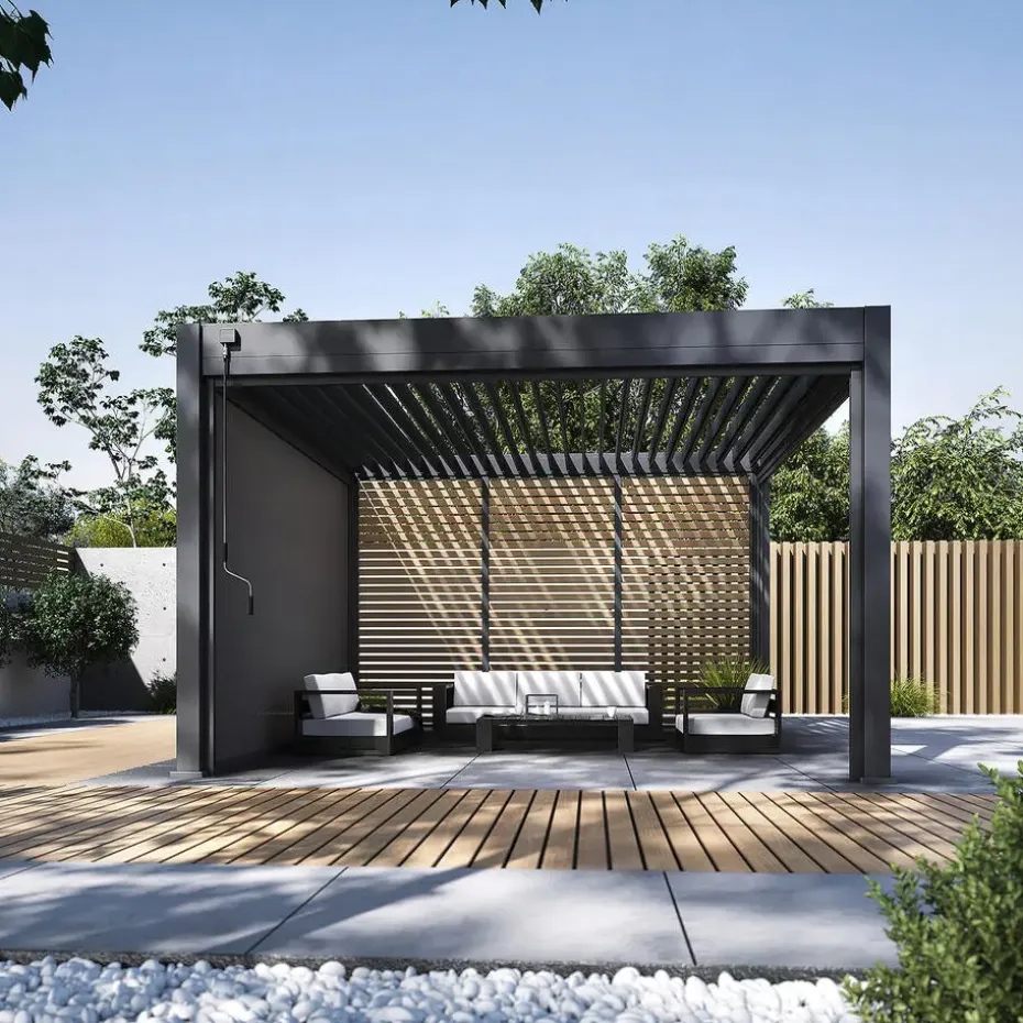 De Orion Premium overkapping 400 x 400 cm is een stijlvolle en praktische oplossing voor mensen die op zoek zijn naar een manier om hun buitenruimte te beschermen tegen de zon, regen of sneeuw. Hiermee verleng je je buitenseizoen en zit je altijd comfortabel in eigen tuin. De Orion Premium overkapping biedt een overdekte ruimte van 16 m² waar je kan genieten van het buitenleven in alle seizoenen. Daarnaast is deze pergola perfect geschikt als overkapping voor een lounge set, zwembad of spa. De overkapping kan ook dienen als carport voor een motor of auto.