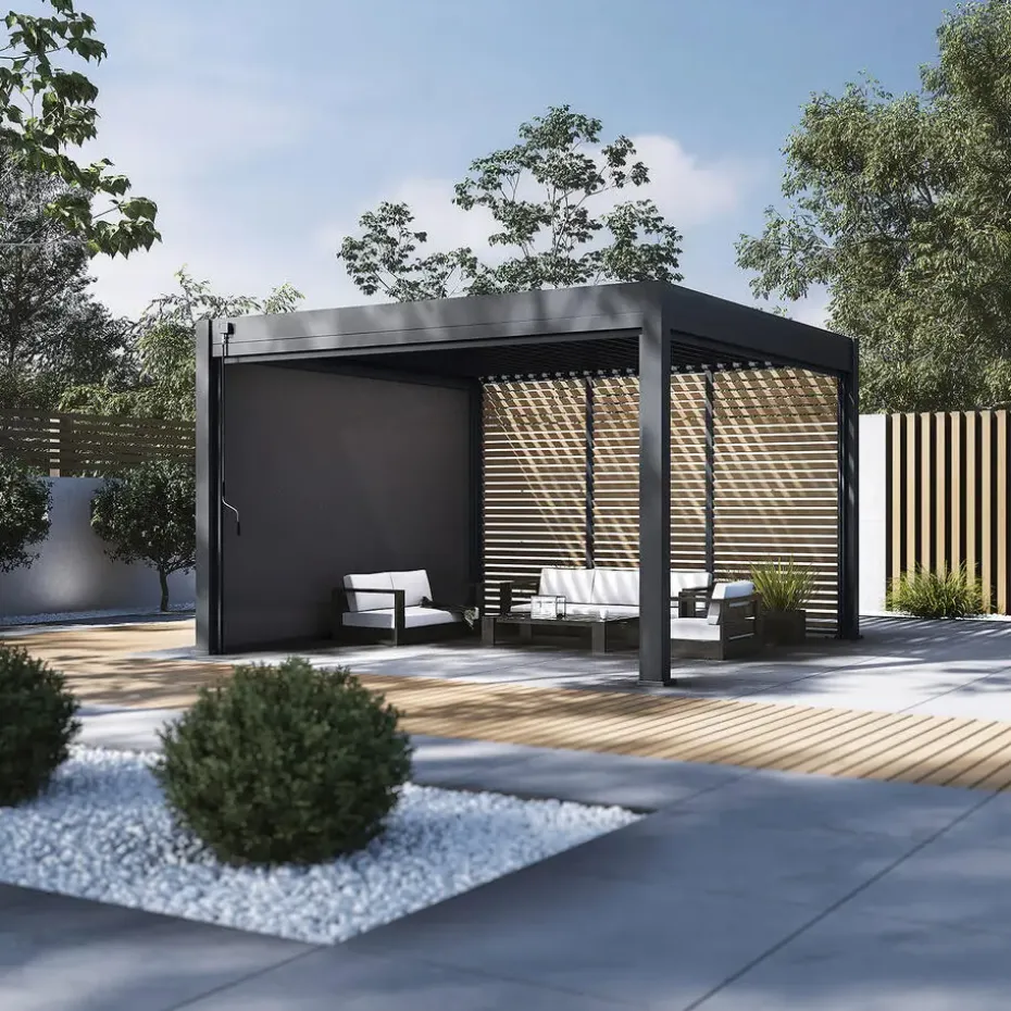 Je Orion Premium pergola 400 x 400 uitbreiden met accessoires? Dat kan! Met het Pull Down Zijscherm of het Louvre Shutter paneel zit je heerlijk in de schaduw en beschut tegen de wind. Daarnaast zorgen deze accessoires ook voor meer privacy. Door het unieke ontwerp bevestig je het zijscherm en het paneel volledig geïntegreerd in jouw pergola.