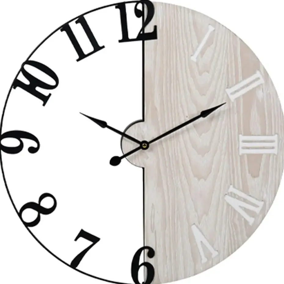Een echte blikvanger voor aan de muur! Deze grote wandklok van 50 cm combineert de warme uitstraling van hout met het stoere karakter van zwart metaal. Het open design geeft ‘m een luchtige look, terwijl de duidelijke wijzers zorgen dat je in een oogopslag de tijd ziet. Perfect voor in de keuken, woonkamer of hal overal waar stijl en functionaliteit samen mogen komen. Voeding: AA batterij ( niet inbegrepen)