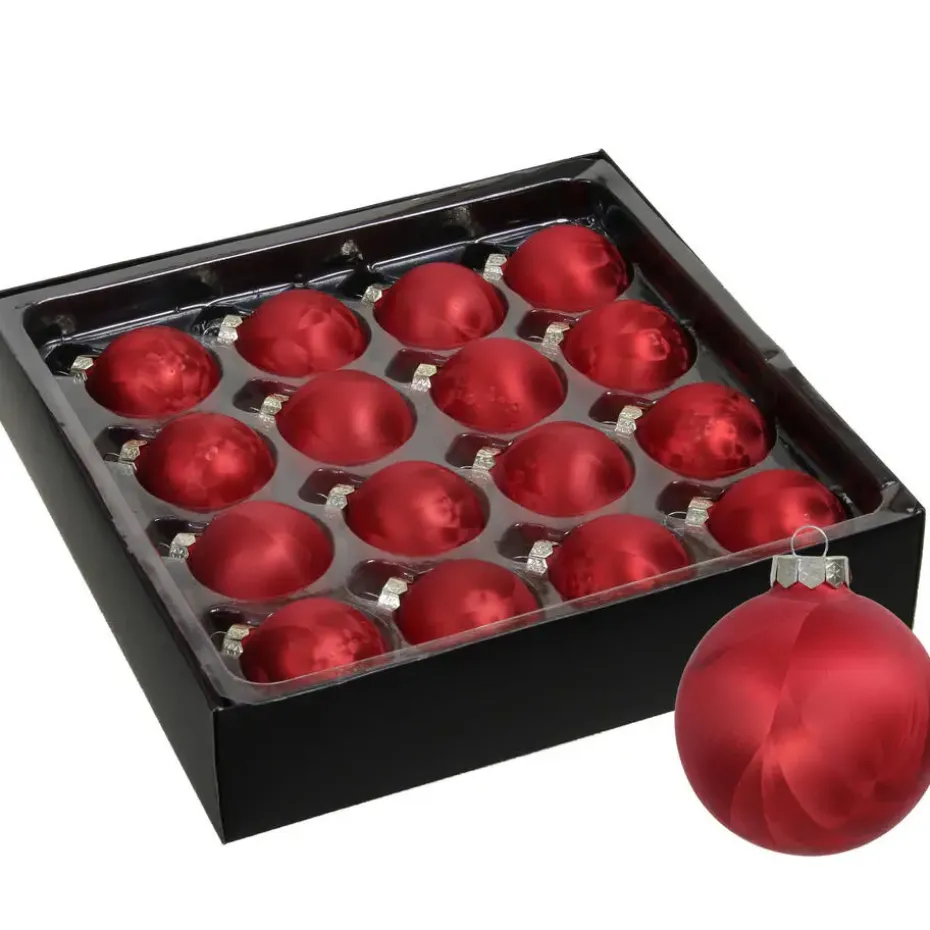 Set van 16x stuks luxe kerstballen in de kleur rood met ijslak finish. Maak je kerstboom tot een betoverend pronkstuk met deze luxe kleine kerstballen. Dit pakket bevat 16x stuks prachtige ballen met een diameter van 4 cm, elk met een verfijnde rode tint en een schitterende ice finish, waardoor ze een sprankelende toevoeging zijn aan je feestelijke decoratie. Wij adviseren je om kerstbalhaakjes mee te bestellen (niet inbegrepen).