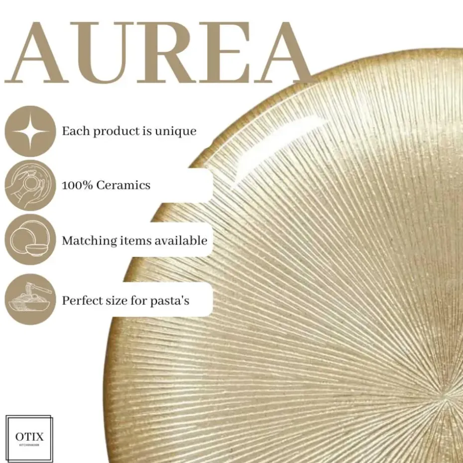 Breng elegantie naar je tafel met de OTIX Ontbijtborden Bordenset voor 6 personen. Deze prachtige set, onderdeel van de AUREA-collectie, bestaat uit dessertborden van 21 cm met een luxe gouden glitterafwerking. Perfect voor ontbijt, desserts of voorgerechten. De borden zijn gemaakt van hoogwaardig glas, waardoor ze niet alleen stijlvol zijn, maar ook vaatwasserbestendig. Een verfijnde toevoeging aan elk diner of feest!