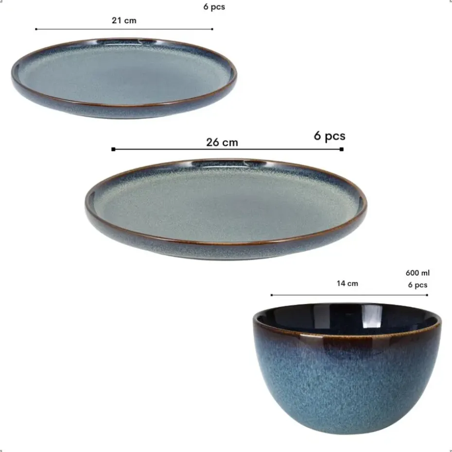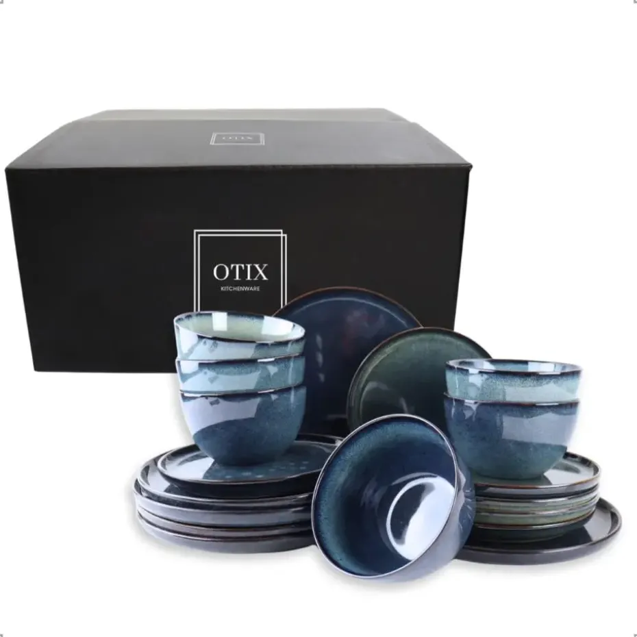 De OTIX serviesset uit de “EBONY” collectie vormen een set van 18 stijlvolle borden en kommen, perfect voor een compleet diner met vrienden of familie. Deze serviesset, met royale afmetingen, zijn uitgevoerd in een diepe blauwe kleur en gemaakt van hoogwaardig keramiek. Ideaal voor het serveren van hoofdgerechten en het creëren van een luxe tafelsetting.