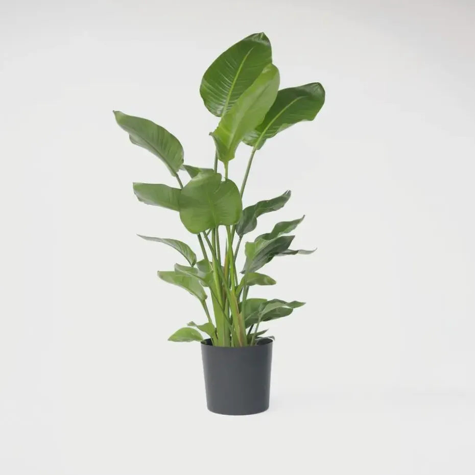 Dé meest populaire groene kamerplant op dit moment is bij uitstek de Strelitzia Nicolai, ook wel Paradijsvogelplant genoemd. Waar de plant voorheen erg populair was vanwege zijn prachtige bloemen is hij de laatste tijd vooral geliefd door zijn prachtige en exotische, groene bladeren. Deze gigantische Paradijsvogel plant is met zijn grote en stevige grijsachtige bladeren een prachtige kamerplant voor ieder interieur. De Strelitzia is een van de meest exclusieve bloeiende kamerplanten. Deze prachtige, grote paradijsvogelplant komt oorspronkelijk uit Zuid-Afrika. De exotische planten zijn echte eyecatchers met bloemen die doen denken aan vogeltjes.