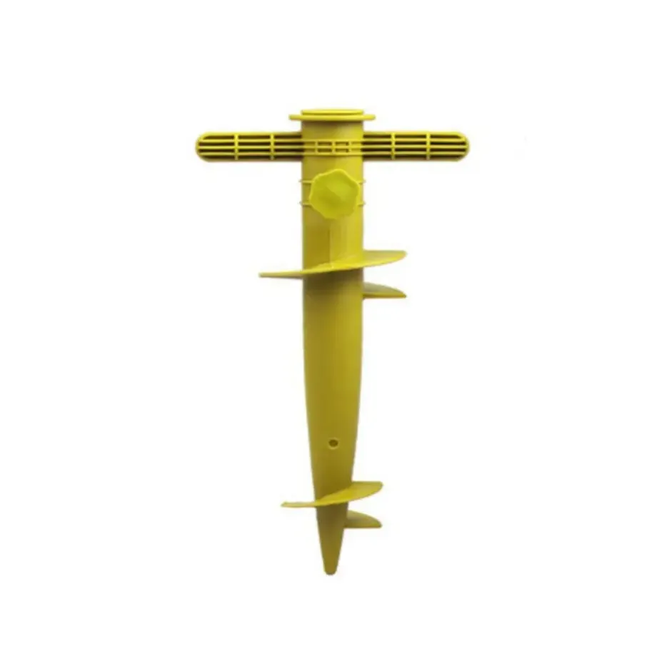 Deze parasolhouder/parasolboor/parasolharing in de kleur geel heeft een lengte van circa 31 cm en is door de diameter van circa 2,2 – 3,2 cm geschikt voor een parasolstok met een doorsnede van circa 2,5 cm. De houder is gemaakt van kunststof en is makkelijk in de grond te bevestigen.