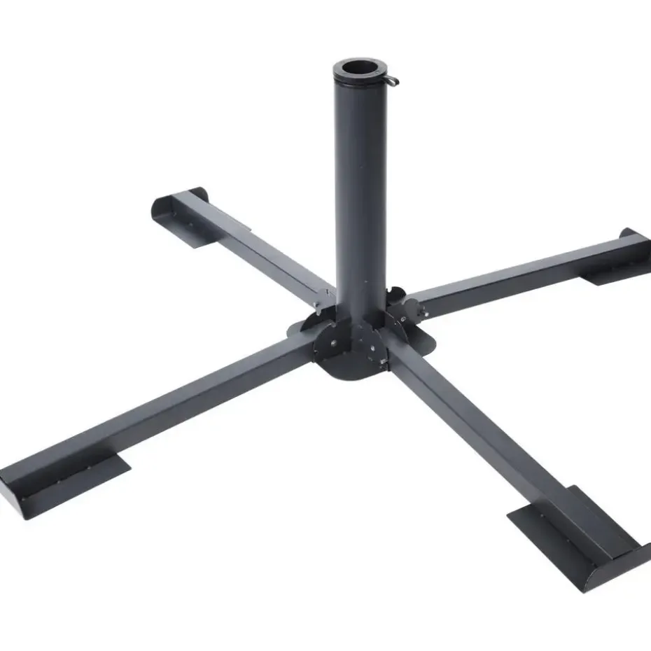 Inklapbare parasolvoet antraciet grijs metaal voor 40 cm stenen. Een stevige parasolvoet welke u kunt verzwaren met tegels van 40 x 40 cm. Geschikt voor parasols met een stangdiameter van 21-52 mm, adapters/palen meegeleverd voor stangen van 35, 38 en 48 mm. Afmeting uitgeklapt: ca. 85 x 85 x 33 cm. Afmeting ingeklapt: ca. 14 x 14 x 40 cm. Materiaal: metaal. Gewicht: ca. 2,19 kg.