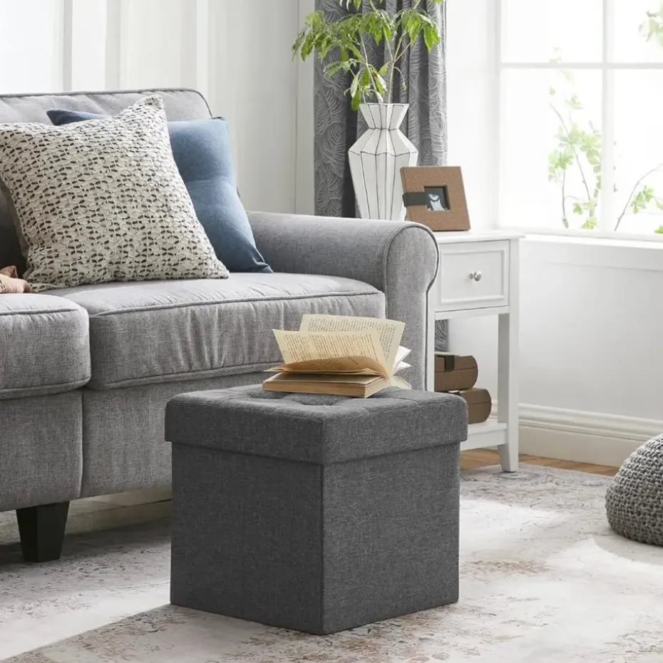 Met een comfortabele gevoerde zitting en een afneembaar zitdeksel biedt de poef niet alleen extra zitruimte, maar ook handige opbergruimte. Het knoopgetufte ontwerp zorgt voor een extra vleugje stijl, terwijl het stevige kunstlinnen, MDF en schuim materiaal zorgt voor duurzaamheid en comfort. En het mooiste? De poef is inklapbaar en eenvoudig te reinigen, waardoor het niet alleen praktisch, maar ook onderhoudsvriendelijk is. De ideale oplossing voor wie op zoek is naar een veelzijdig meubelstuk dat zowel stijl als functionaliteit biedt!