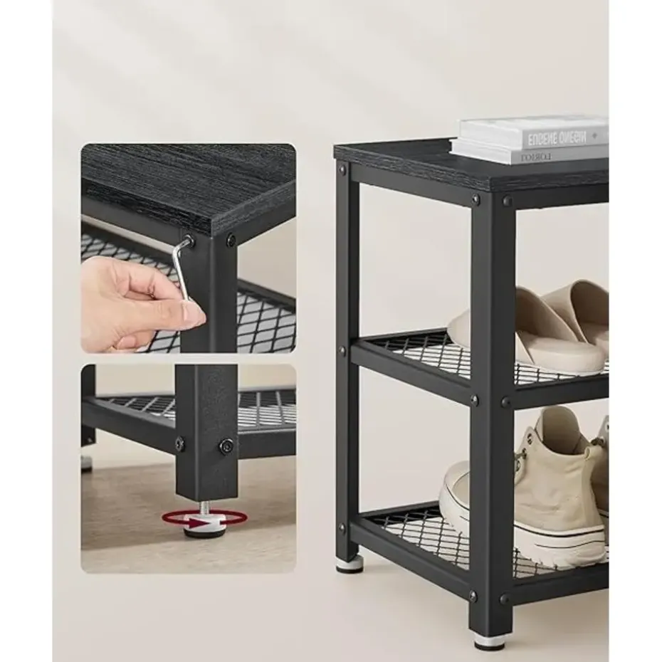 Geen ingewikkeld gedoe! Met de duidelijke instructies en gemarkeerde onderdelen zet je dit schoenenrek in een mum van tijd in elkaar. Draai simpelweg de schroeven vast en monteer de verstelbare pootjes voor extra stabiliteit – en klaar!