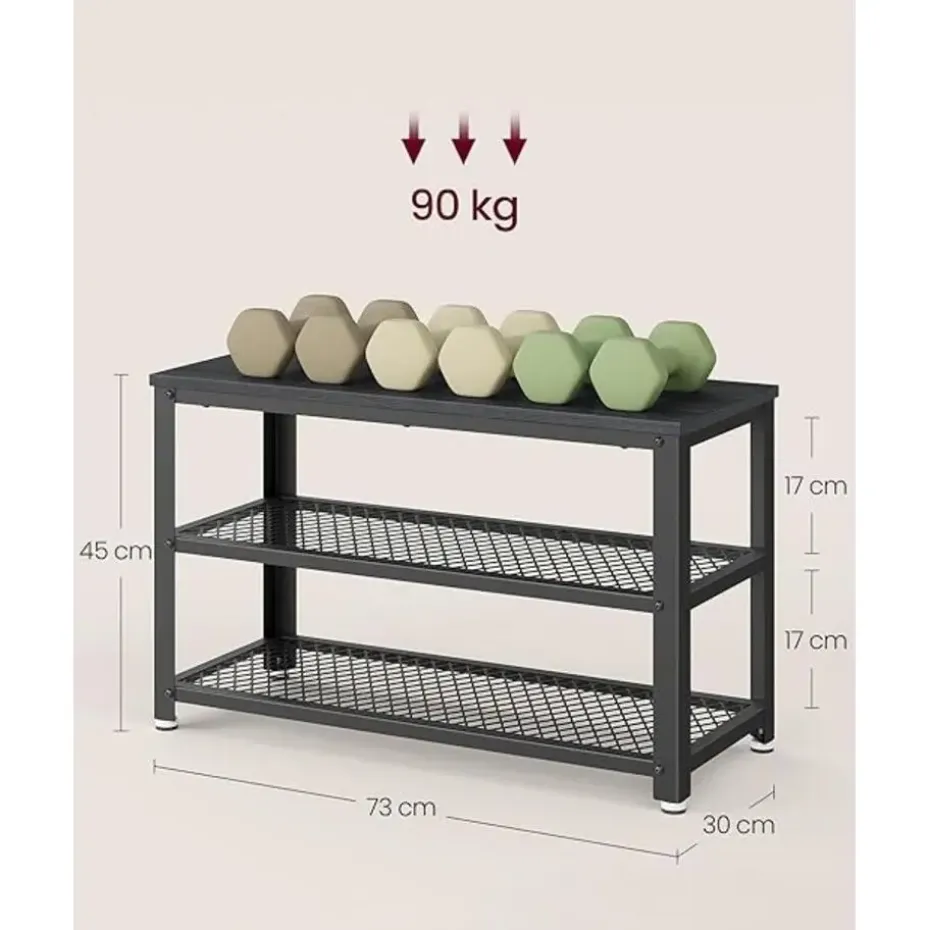 Deze stevige schoenenbank is vervaardigd uit hoogwaardige spaanplaat en een sterk metalen frame, waardoor hij tot 90 kg kan dragen. Perfect om op te zitten terwijl je je schoenen aantrekt, of om even comfortabel te wachten op je gezelschap.