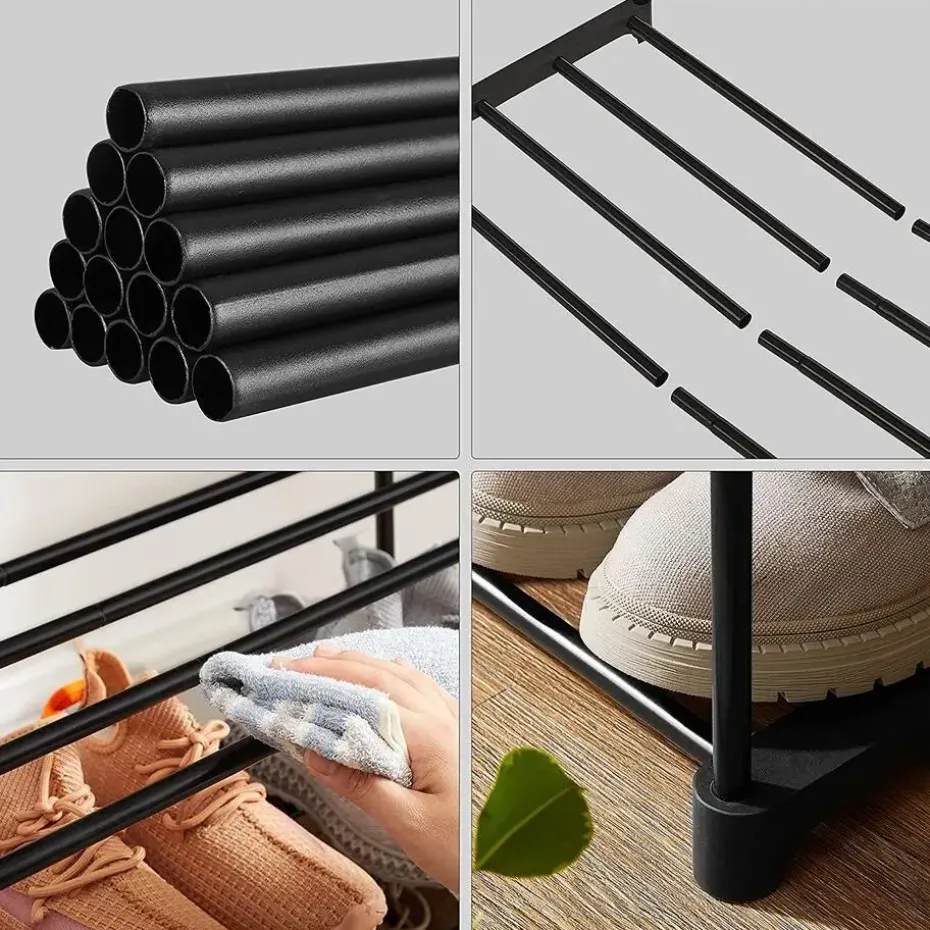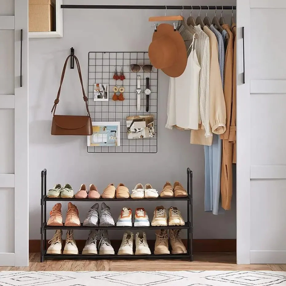 Altijd tijd verspillen aan het zoeken naar de juiste schoenen in een grote, rommelige stapel? Dit 3-tier schoenenrek is het antwoord dat je zoekt! Red je schoenen van de stapels en geef ze een handige plaats. Kwaliteit: Het metalen frame en de hoogwaardige kunststof connectoren geven deze schoenenorganizer een stevige, stabiele structuur die tot 5 kg per laag ondersteunt. Met een eenvoudig ontwerp past dit metalen schoenenrek perfect in uw ruimte. Ook besparen het aanpasbare ontwerp en de eenvoudige montage uw tijd en energie.