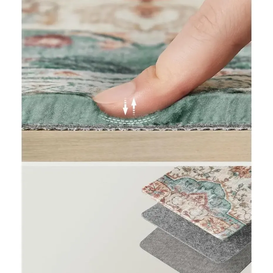 Dankzij de TPR-achterkant heeft dit vloerkleed uitstekende antislip eigenschappen. Het blijft veilig en stabiel liggen op verschillende vloeroppervlakken zoals hardhout, tegels en laminaat. Dit maakt het kleed ideaal voor gebruik in zowel drukke woonkamers als rustige slaapkamers.