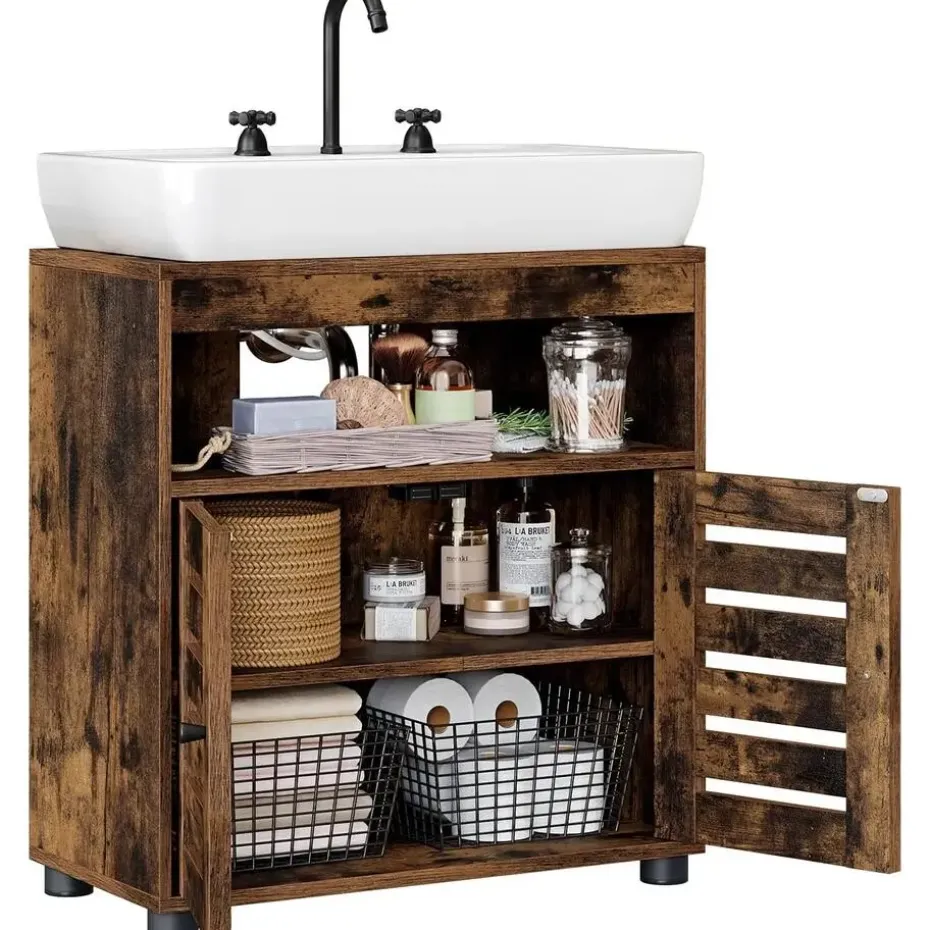 Is je badkamer toe aan een opfrisbeurt? Deze stijlvolle vintage bruine kast voegt niet alleen tijdloze charme toe, maar geeft je badkamer ook een uniek karakter.