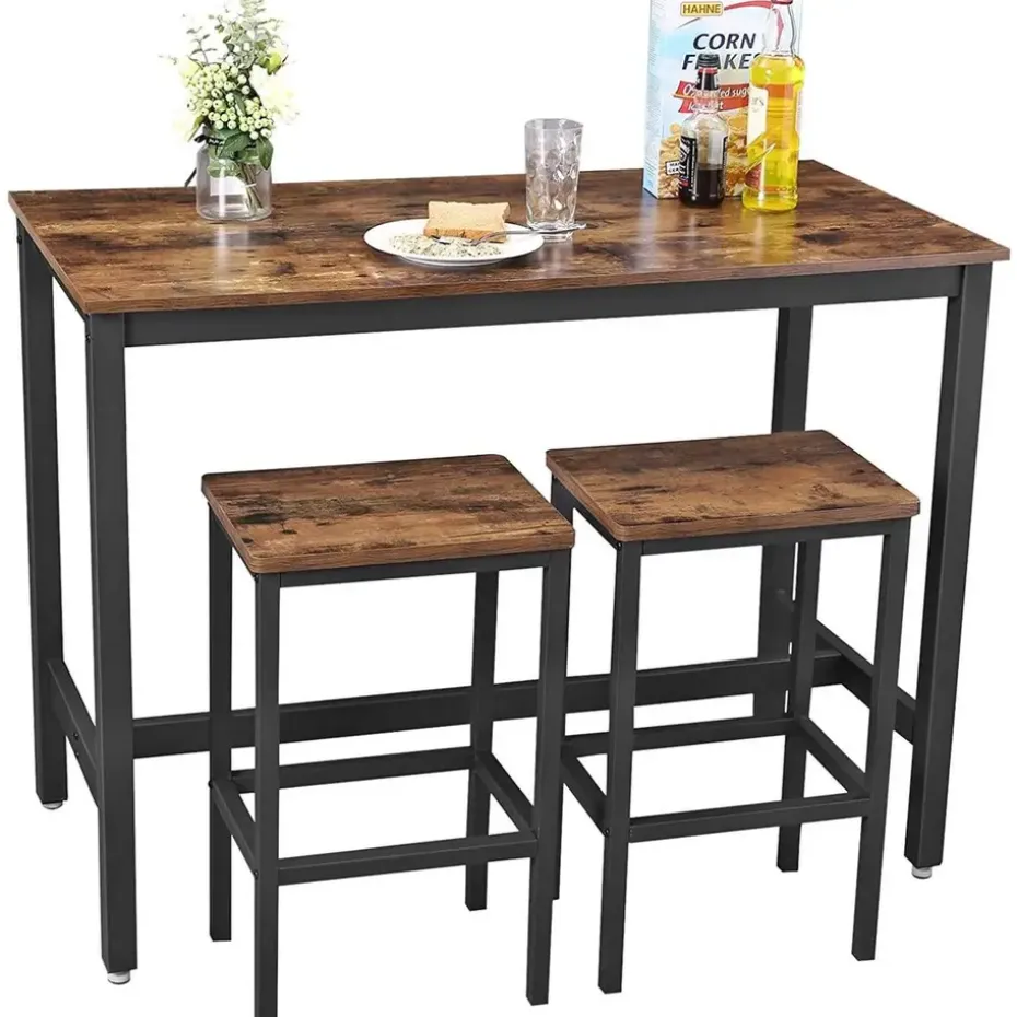 De twee barstoelen van 40 x 30 x 65 cm passen perfect onder het barmeubel, dus de set is uiterst plaatsbesparend, zelfs als u 2 extra stoelen aanschaftDe eenvoudige structuur van de keukenstoelen en de keukentafel en de schroeven van dezelfde grootte maken een snelle en eenvoudige montage mogelijk