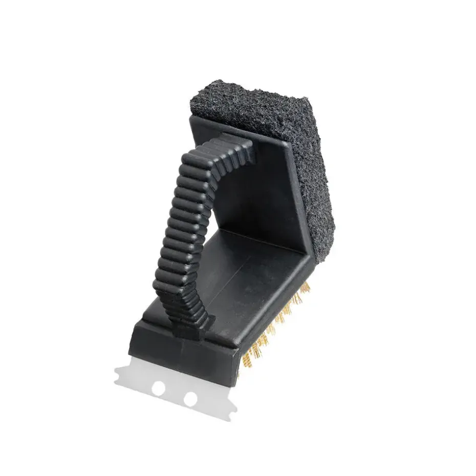 Kunststof 3-in-1 BBQ-borstel voor moeiteloos schoonmaken van je grillrooster. Deze veelzijdige borstel combineert drie functies in één: schrapen, schuren en borstelen, zodat jouw grillrooster in een handomdraai weer blinkt als nieuw.