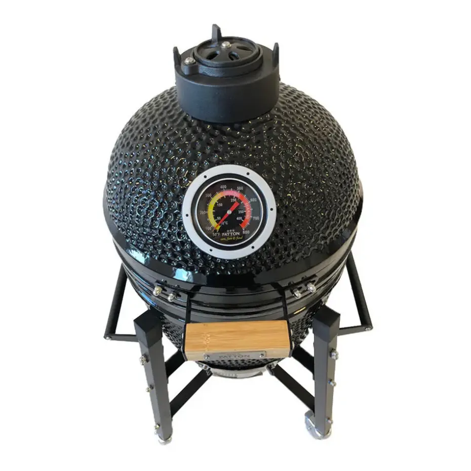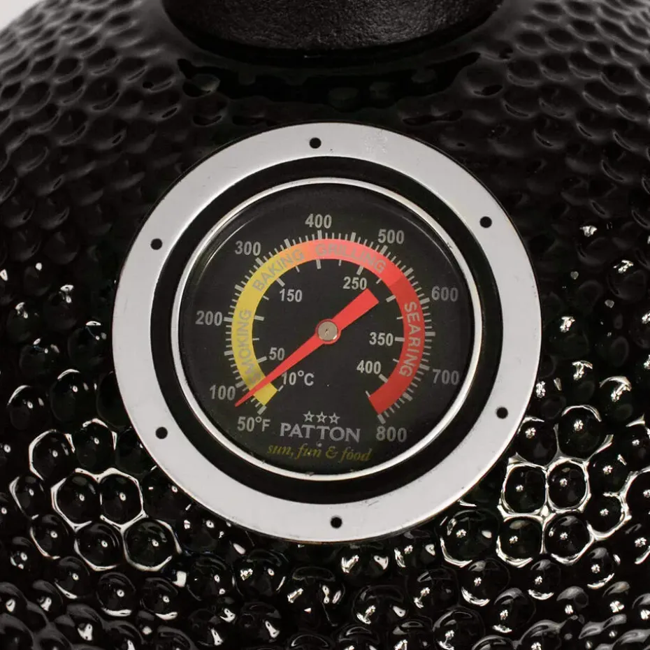 De Patton Kamado 15 barbecue wordt standaard uitgevoerd met een degelijk en verrijdbaar onderstel. De houtskool barbecue kan gemakkelijk worden aangestoken met een briketten starterset. Als de briketten of houtskool warm zijn, kan de barbecue worden gestart. Dankzij het ventilatie rooster kan de luchttoevoer worden geregeld.