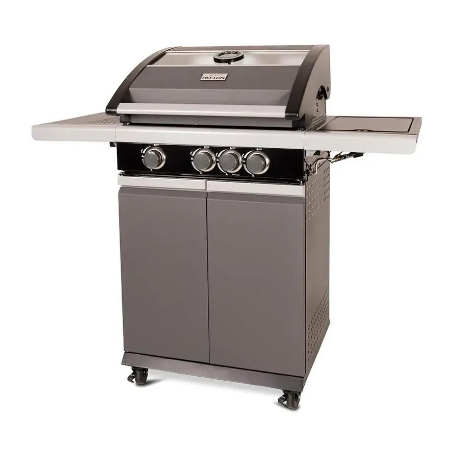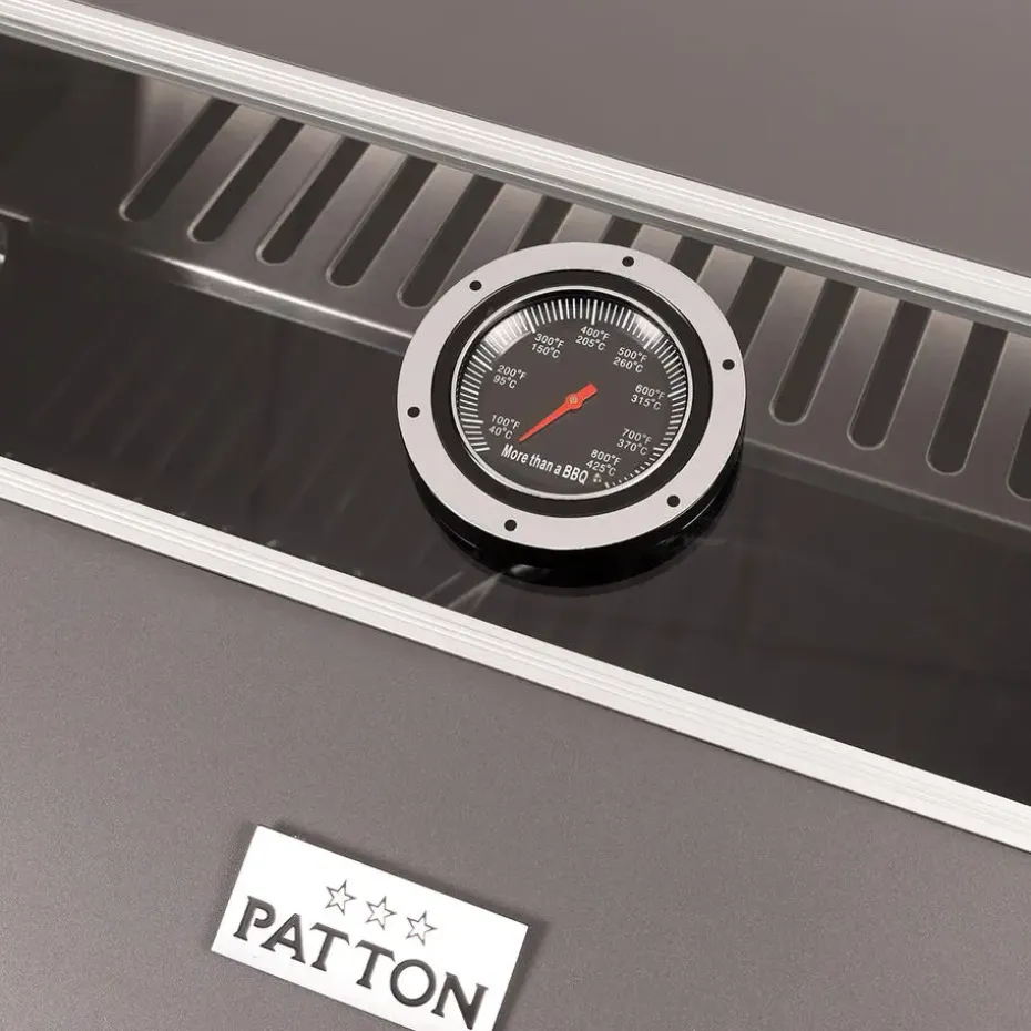 Zoek je een prachtige Patton barbecue met glazen kap? Dan is de Patton Patio Pro Chef gasbarbecue helemaal geschikt voor jou! De Patton Patio Pro Chef is van topkwaliteit en is te plaatsen in iedere tuin. Met de Patton Patio Chef gasbarbecue maak je heerlijke gerechten klaar voor jou en je vrienden. De barbecue heeft een mooi groot formaat waardoor je verschillende gerechten tegelijkertijd kunt klaarmaken. De barbecue heeft vier wielen, hierdoor kun je de barbecue gemakkelijk verplaatsen. De Patio Chef gasbarbecue van kwaliteitsmerk Patton is volledig gemaakt van RVS. De barbecue is voorzien van drie hoofdbranders en een zijtafel met een zijbrander. Op deze zijbrander kun je eenvoudig saus warm houden. De gasbarbecue is voorzien van gietijzeren roosters met een afmeting van 57 cm bij 40 cm. Naast dit mooie rooster beschikt de gasbarbecue ook over een RVS warmhoud plateau. Dit plateau kan ook functioneren als extra grill niveau voor bijvoorbeeld groente of vis te garen. De Patio Chef barbecue is eenvoudig te ontsteken door een geïntegreerde ontsteking. De barbecue heeft geëmailleerde vlammendempers die ervoor zorgen dat schoonmaken vrij eenvoudig is en dat de barbecue lang mee kan gaan. De barbecue is voorzien van een glazen kap, hierdoor is het eenvoudig het garingsproces te volgen. De kap hoeft niet geopend te worden, waardoor de temperatuur behouden blijft binnenin de barbecue. De gasbarbecue van Patton heeft een afmeting van 54 x 123 x H113 cm. De barbecue beschikt over drie RVS-branders van 9 kW en een 2.4 kW zijbrander.