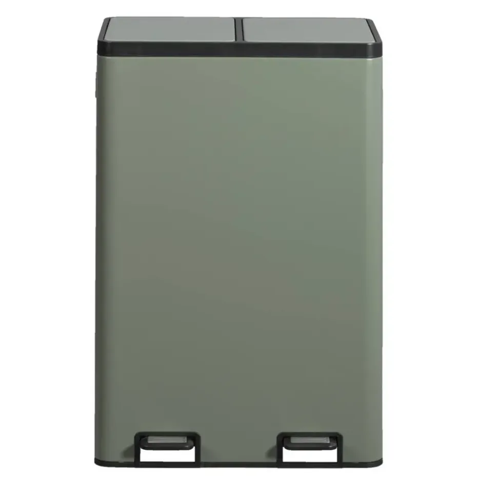 Pedaalemmer Duo is een groene metalen prullenbak met een totale inhoud van 60 liter, verdeeld over twee bakken. Deze afvalbak heeft een rustieke uitstraling dankzij de groene kleur in combinatie met metaal. De afvalbak heeft een mooi neutraal design voor in je keuken of bijkeuken.