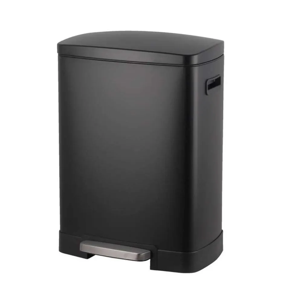 Pedaalemmer Paco is een zwarte metalen prullenbak met een totale inhoud van 40 liter, verdeeld over twee bakken van 15 liter en 25 liter. Deze afvalbak heeft een rustieke uitstraling dankzij de mat zwarte kleur in combinatie met metaal. De afvalbak heeft een mooi neutraal design voor in je keuken of bijkeuken.