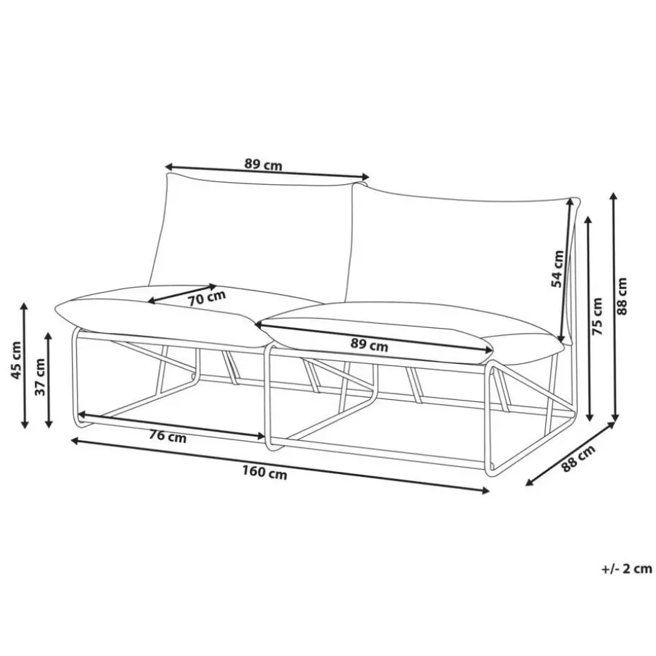 Aanbod omvat: 1 x Tweezitsbank, 2 x Zitkussen, 2 x Rugkussen