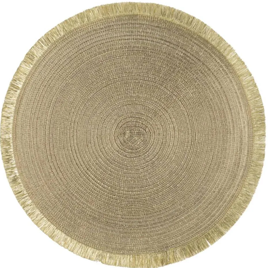 Placemat Zoë is goud van kleur en heeft een diameter van 35 cm. Creëer sfeer op tafel met een placemat met franjes. Onmisbaar bij een goed verzorgd diner. Ook goed te combineren als decoratie met kaarsen, vaasjes of planten.