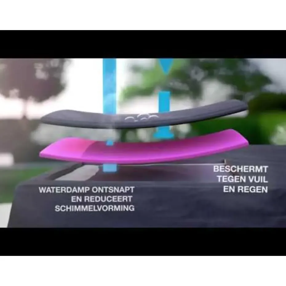 Let op: Als het vochtig weer is of de temperatuur snel verandert raden wij aan om de kussens droog op te bergen. Door grote temperatuurverschillen kan er namelijk vocht in de kussens, op de grond of stoep onder het tuinmeubel ontstaan. Dit vocht kan dan veranderen in condens, wat tegen de binnenkant van de beschermhoes komt en uiteindelijk in de kussens trekt. Om te voorkomen dat je kussens vochtig worden en mogelijk gaan schimmelen, is het slim om ze bij dit soort weersomstandigheden binnen op een droge plek te bewaren. Een Aerocover hoes kan maximaal 350 gram condens per uur uitademen, bij meer neerslag is het noodzakelijk om de hoes te luchten.