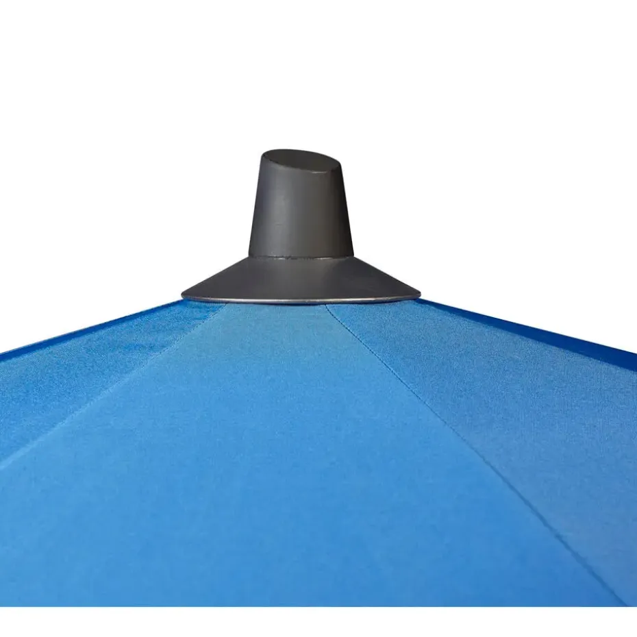Het parasoldoek van de Riva parasol 3 meter is antraciet van kleur. Het doek is van goede kwaliteit, deze is namelijk gemaakt van 100 % polyester. Daarnaast is het parasoldoek voorzien van een speciale vuil- en waterafstotende coating. Deze coating zorgt er ook voor dat het doek minder snel van kleur verschiet. Aan het uiteinde van de baleinen van de Riva parasol is een speciale doekspanner gemaakt. Hierdoor staat het doek altijd mooi strak gespannen.