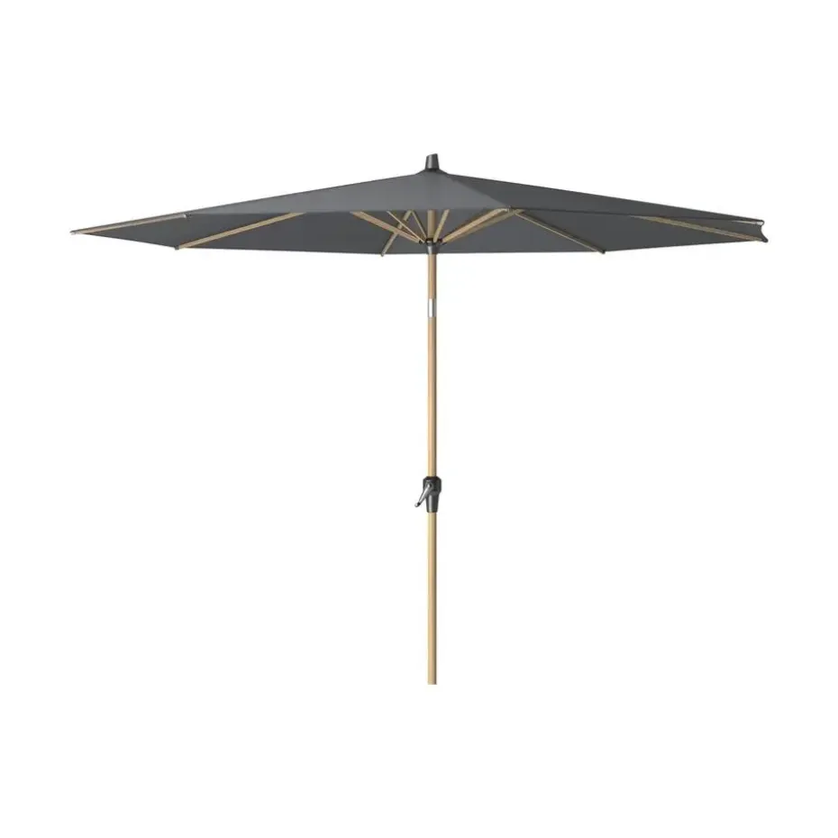 Het frame van de Riva parasol is gemaakt van aluminium en is afgewerkt met een teak houtlook. Dit combineert de voordelen van licht en roestvrij aluminium met de warme uitstraling van hout.