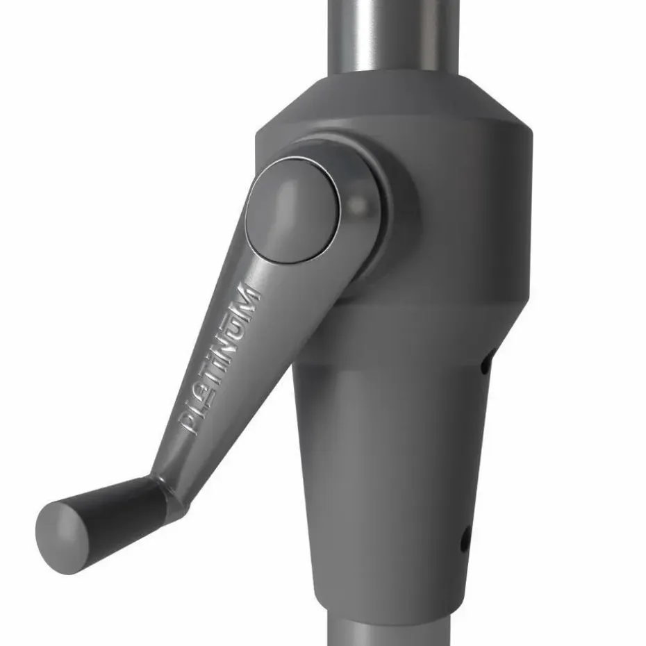 De Riva parasol beschikt over een praktisch kniksysteem waarmee je het doek schuin kunt kantelen. Dit is ideaal om de stand van het doek aan te passen aan de positie van de zon. Houd er wel rekening mee dat de parasol in gekantelde stand meer wind vangt. We adviseren dan ook om hier extra alert op te zijn.