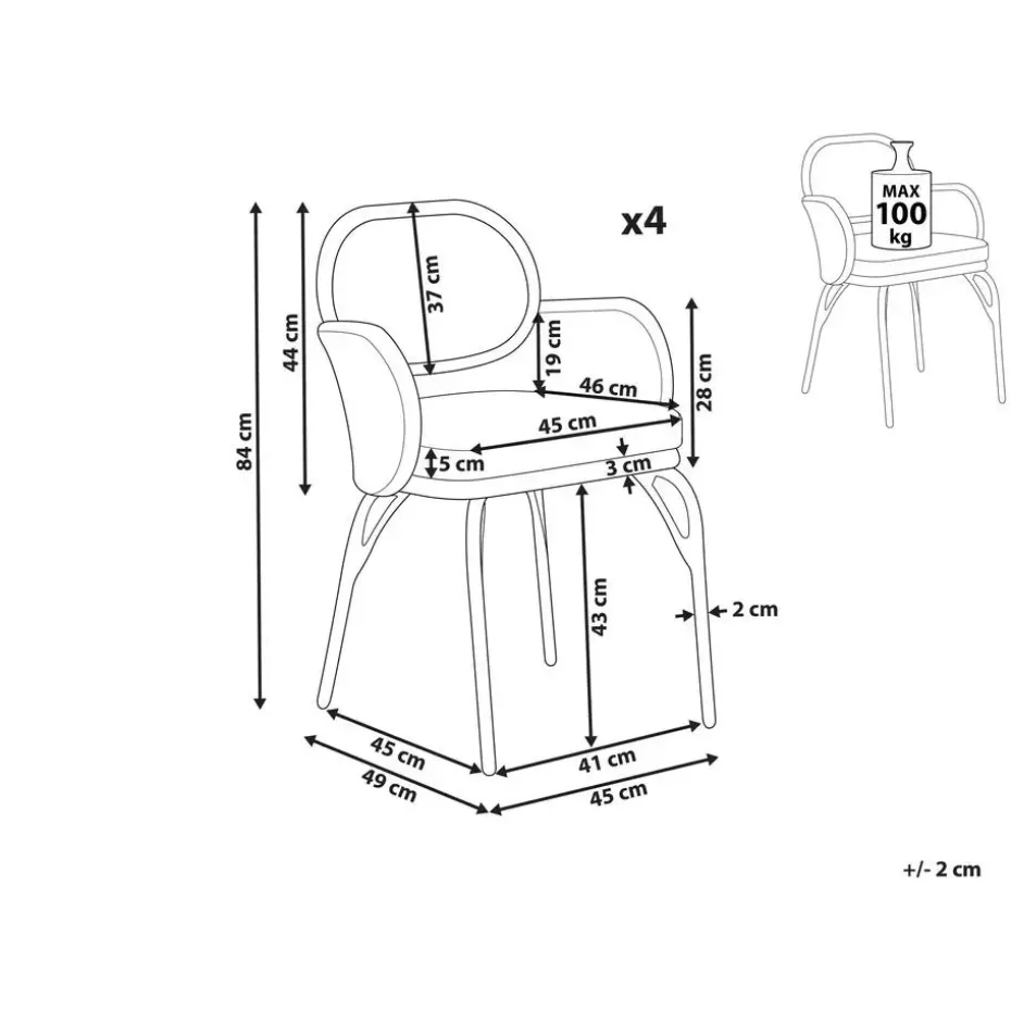 Aanbod omvat: 4 x Stoel, 4 x Zitkussen