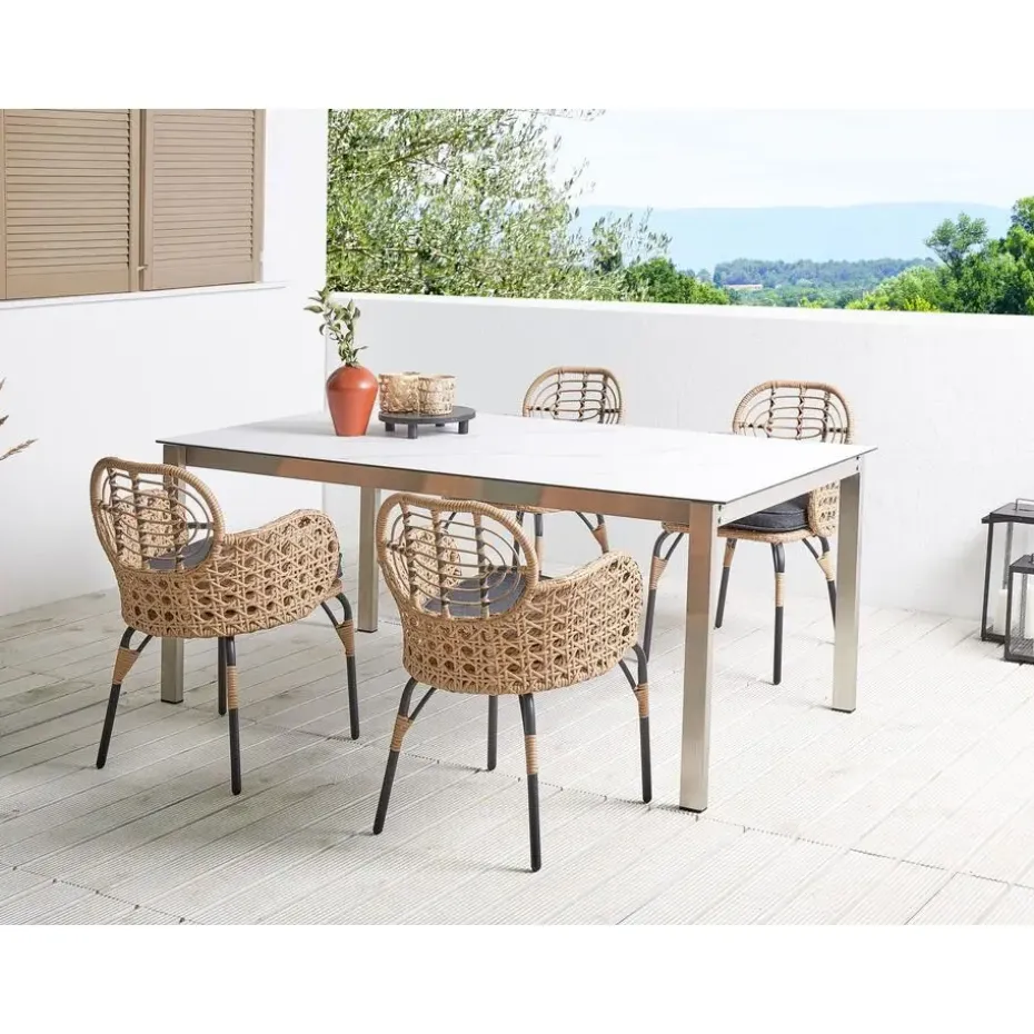 Belangrijkste eigenschappen: Gezellige uitstraling, Stevig gevlochten rotan, Hoogwaardige kwaliteitsmaterialen, UV-bestendigheidsklasse 5 (ISO 105-B02), Geschikt voor binnen- en buitengebruik, Verwijderbare kussenhoezen