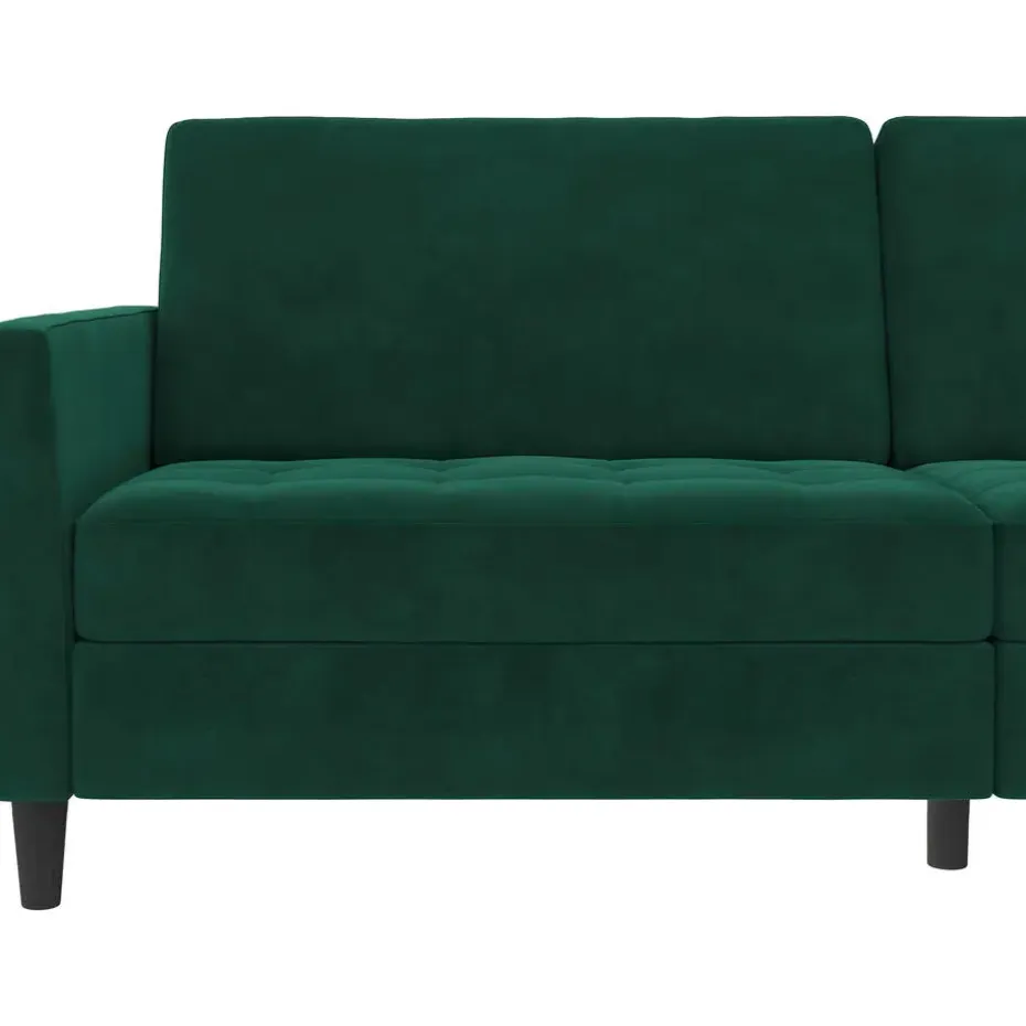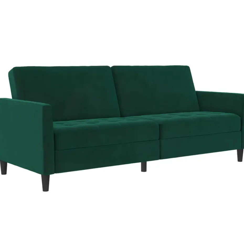 Deze bank heeft een moderne stijl. Hij is gebouwd met technisch hout en een fluwelen bekleding. De vulling is gevuld met schuim voor extra comfort. Hij heeft een uitschuifbaar slaapoppervlak en is dus zowel een slaap- als rustruimte. De bank is handmatig verstelbaar en kan gemakkelijk worden omgevormd tot een logeerbed.
