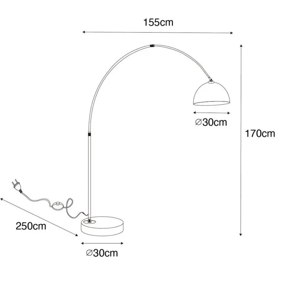 Maak jouw interieur af met Arc! Deze booglamp is afgewerkt in het zwart met smoke glas en is gemaakt van staal. De voet is gemaakt van marmer. Arc heeft een hoogte van 170 cm, een lengte van 155 cm en een breedte van 30 cm. In een modern interieur mag Arc absoluut niet ontbreken! Arc komt inclusief snoer en stekker. Het snoer is 250 cm lang. Zorg ervoor dat je er nog een lichtbron met een E27 fitting bijbesteld, deze is niet inbegrepen. Arc is dimbaar, dimmer is niet inbegrepen. Wat een topper is Arc. Altijd de juiste sfeer in huis met deze moderne booglamp.