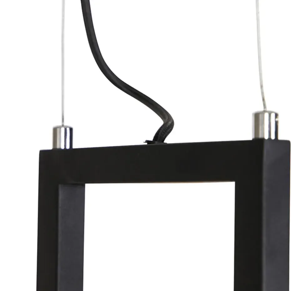 Hanglamp cage is van zwart metaal en heeft een houten plank. Hij is gemaakt van staal. Hij is in hoogte verstelbaar met een minimale hoogte van 73,5 cm en een maximale hoogte van 150 cm. Hij heeft een lengte van 100 cm en een breedte van 18 cm. De montageplaat heeft een diameter van 10 cm en een hoogte van 2,5 cm. Het snoer dat erbij zit heeft een lengte van 106,5 cm. De lamp heeft vier lichtpunten. De lichtbronnen zijn exclusief, bestel deze er dus nog even vier E27 (max. 60 watt) lichtbronnen bij. Let op: het maximale gewicht op de Cage hangt af van de stevigheid van je plafond! Het is goed als je dat op voorhand controleert.
