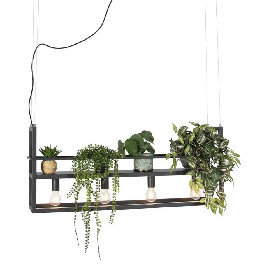 Cage Rack is een van onze toppers! Zijn strakke design zorgt ervoor dat het een echte industriële hanglamp is. Het rek bovenop de hanglamp kan functioneren voor decoratie of bijvoorbeeld kruiden, wanneer je deze boven de eettafel hangt. Cage Rack is gemaakt van staal en afgewerkt in het zwart. Hij heeft een diepte van 18 cm, hoogte van 161 cm en lengte van 100 cm. De montageplaat heeft een diameter van 10 cm en een hoogte van 3 cm. Je maakt de hanglamp af met 4 lichtbronnen die ieder beschikken over een E27 fitting van max. 60 Watt. Zorg dat je deze er dus nog los bij besteld. Cage Rack is een echte sfeermaker voor in huis, doordat je hem zelf kan aankleden. Maak het gezellig in jouw woonkamer, eetkamer of werkkamer met Cage Rack.