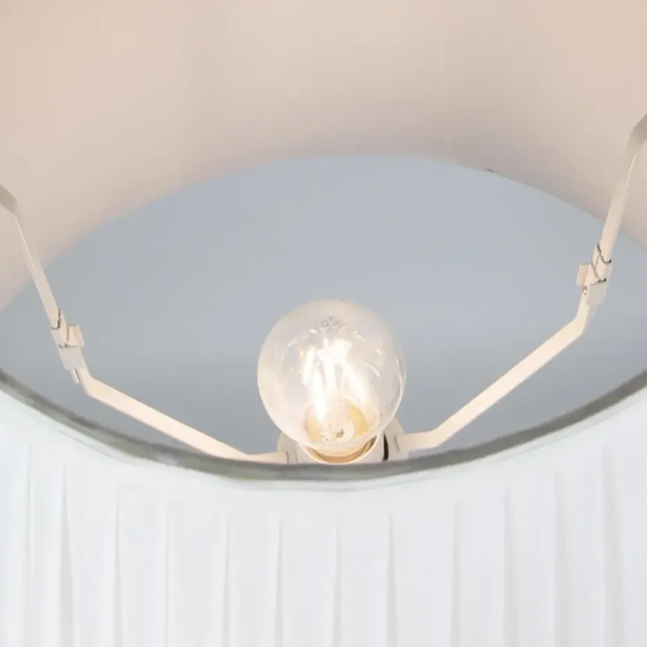 De kap Plisse heeft een klassieke uitstraling door het plooiende stof en laat een mooi warm indirect licht door wat een gezellige sfeer schept. Deze stijlvolle ronde lampenkap is geschikt voor bureau- vloer,- tafel- wand- en hanglampen doormiddel van het Duo Support. Hierdoor kan de kap zowel op een hanglamp als wel op een vloerlamp. Hij heeft een diameter van 25 cm en een hoogte van 16,5 cm.