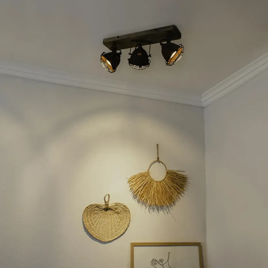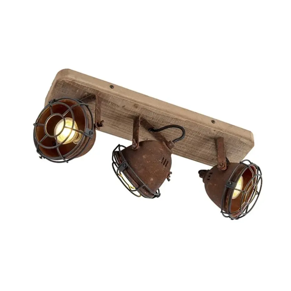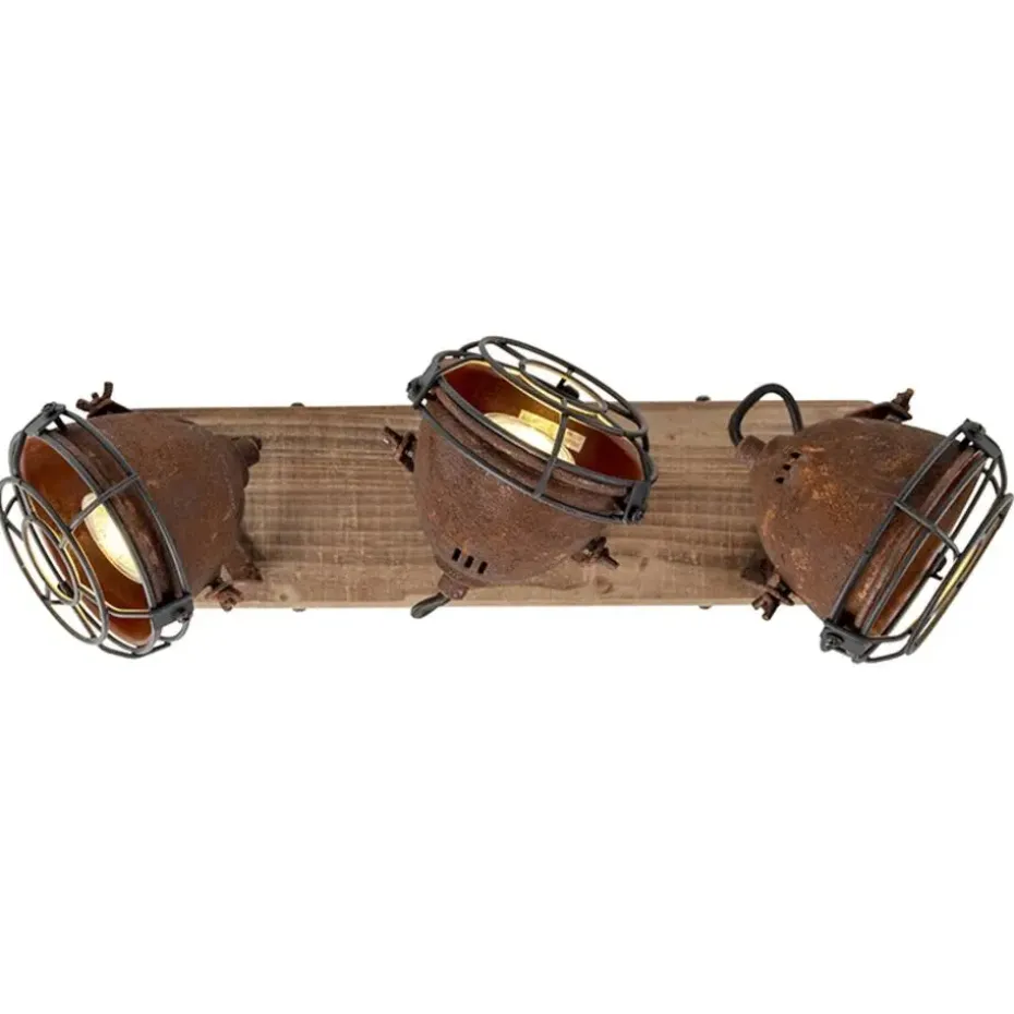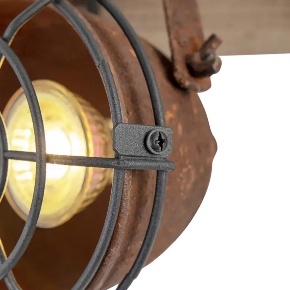 Een stoere spot, ideaal voor in een industrieel interieur! De combinatie van het roestbruin staal en de houten montageplaat geeft deze lamp een industriële look. Staat super mooi in de hal of in de woonkamer. De spots zijn kantelbaar en daardoor perfect om donkere hoekjes in huis op te vullen met licht!