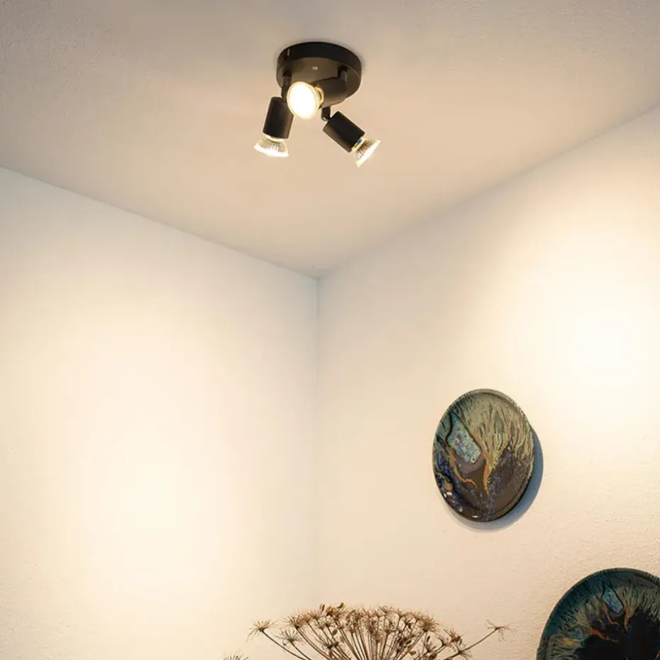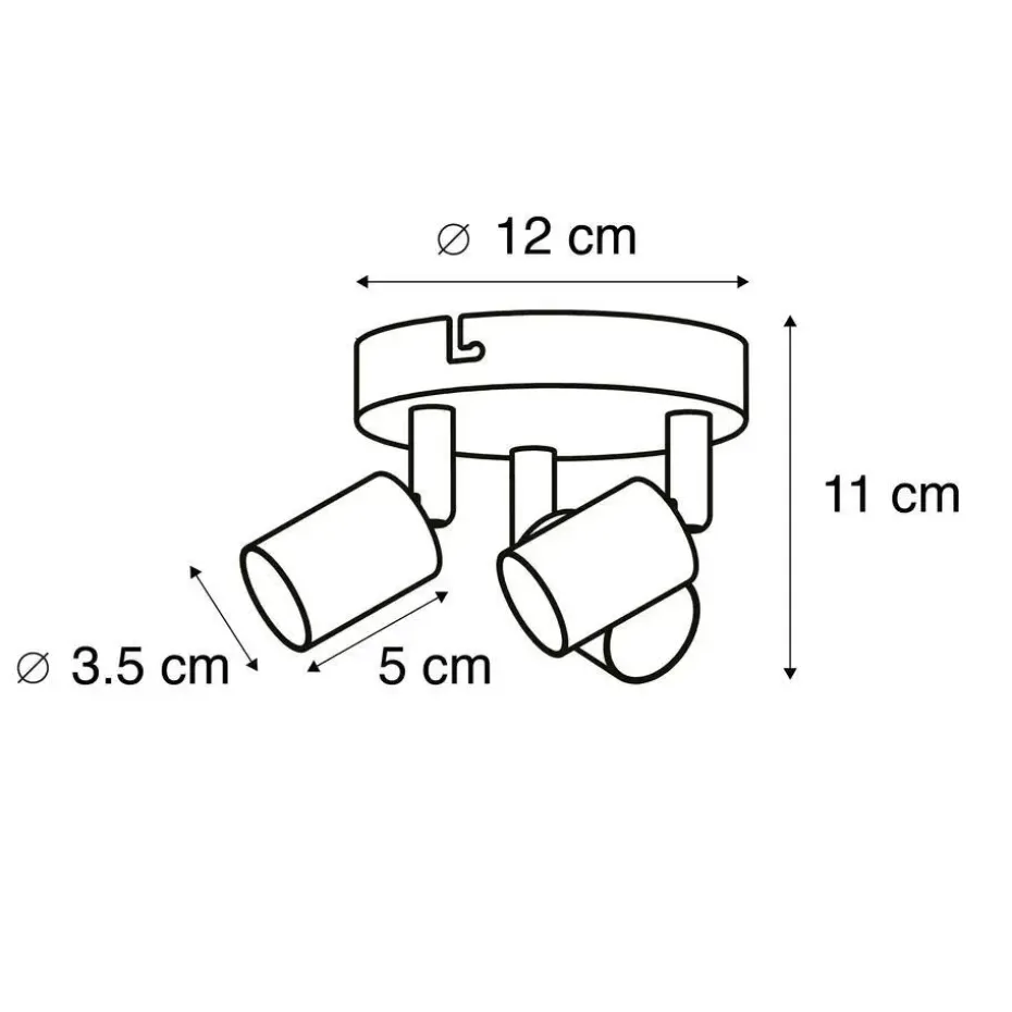 De lamp heeft een hoogte van 11 cm en een diameter van 20 cm. De montageplaat heeft een diameter van 12 cm. Je maakt de lamp af met drie lichtbronnen met een fitting van GU10 (ieder max. 35 Watt). Deze opbouwspot is dimbaar met een externe dimmer (dimmer niet inbegrepen).