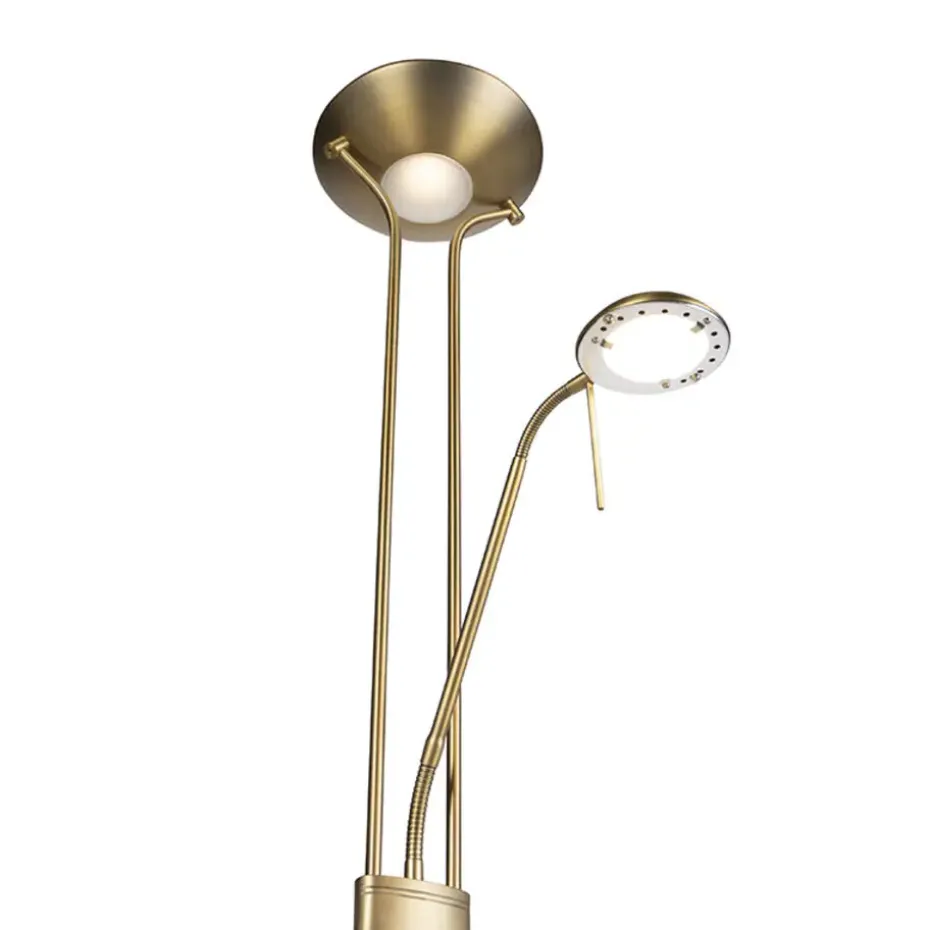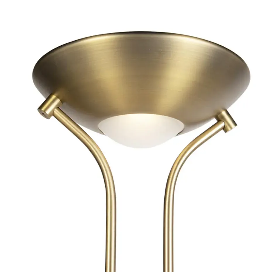 De Diva 2 brons heeft een prachtig uiterlijk zoals je bij een naam als Diva kunt verwachten. Deze uplighter is voorzien van een tweede lichtbron in de vorm van een super handige leeslamp, twee vliegen in één klap dus! Deze leeslamp is voorzien van een flexarm, en is dus volledig richtbaar waar je maar wil. De lamp is dimbaar op het frame waardoor je perfect de geschikte sfeer kunt creëren. Ideaal voor gebruik in je woonkamer. De lamp heeft een totale hoogte van 180 cm. De voet een diameter van 25 cm. Hij wordt met kabel geleverd waarvan de lengte 190 cm is. De lamp beschikt over geïntegreerd LED (niet-vervangbaar). De leeslamp beschikt over 500 lumen en 3000 Kelvin. Met 20.000 branduren zal hij erg lang branden in jouw huis! De ring bovenaan de lamp beschikt over 1800 lumen en 3000 Kelvin. Geef een moderne touch aan je interieur met deze Diva 2!