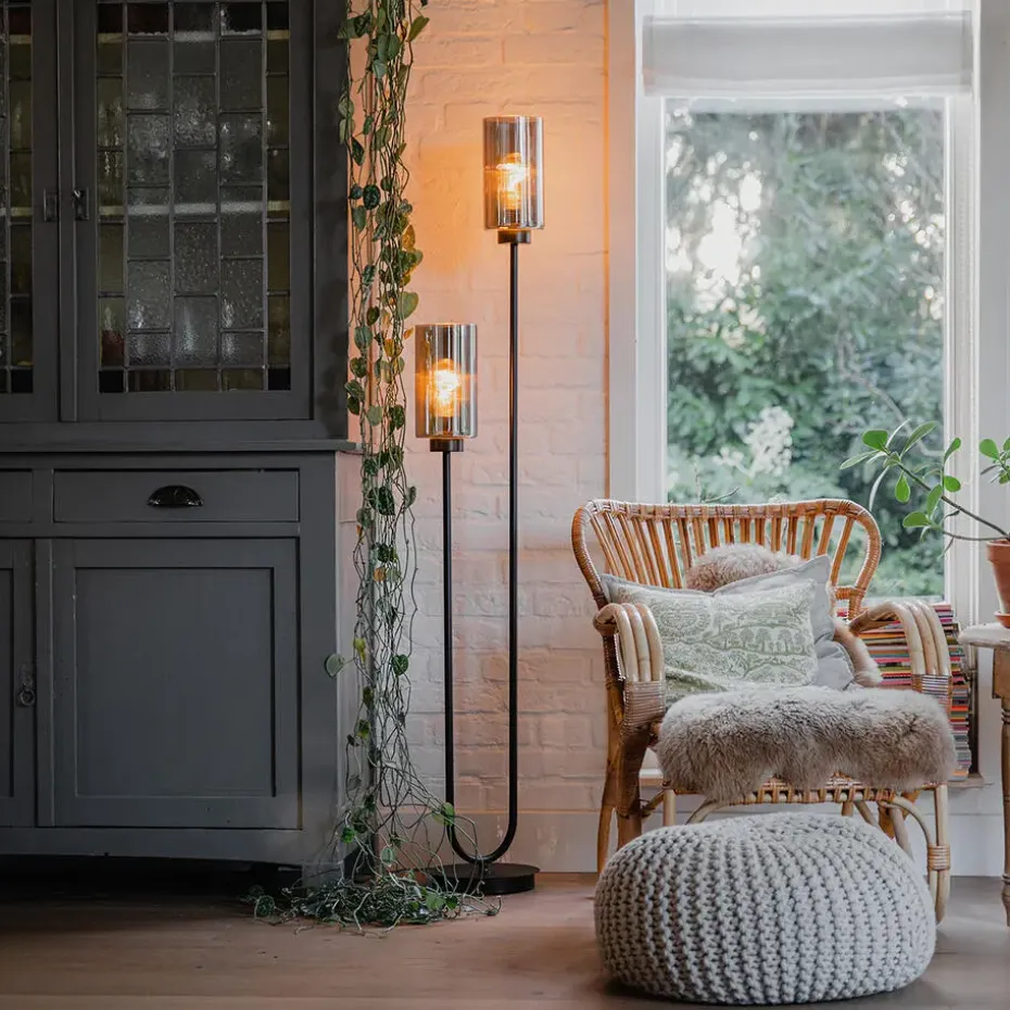 Maak jouw interieur compleet met de stijlvolle Laura! Deze vloerlamp, met een opvallend zwart frame in een strakke U-vorm, straalt elegantie uit. De twee lichtpunten, voorzien van verticale kappen van geribbeld rookglas, maken Laura een ware blikvanger. Perfect voor een Art Deco interieur! Vergeet niet de bijpassende lichtbronnen met E27 fitting mee te bestellen om deze lamp helemaal af te maken. Laura heeft een hoogte van 148 cm en wordt geleverd inclusief een 250 cm lang snoer met stekker. Laura is dimbaar, maar hiervoor heb je een externe dimmer of 2 slimme lichtbronnen nodig. Deze worden niet standaard meegeleverd. Vind snel het perfecte plekje voor Laura in jouw huis.