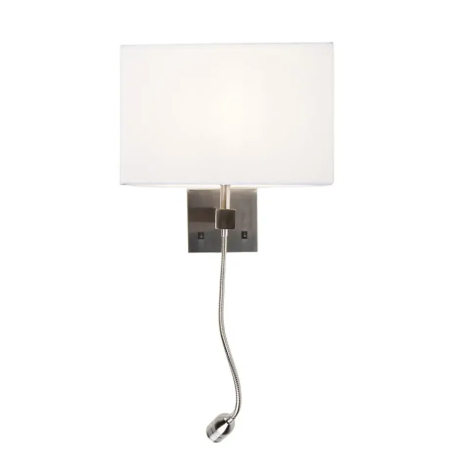 Een sfeervolle, tijdloze wandlamp. Deze Bergamo hoort volledig thuis in jouw moderne woonkamer of slaapkamer. Het is een functionele lamp dankzij de flexibele leesarm inclusief geïntegreerd LED: hij heeft een lichtvermogen van 2400 Kelvin en 90 lumen. Gemiddeld gaat de lichtbron 10.000 branduren mee. Maak je lamp nog compleet met de aankoop van een lichtbron passend in een E27 fitting (max. 60 Watt). De kap van deze lamp heeft een lengte van 30 cm en een hoogte van 20 cm. De leesarm heeft een max. lengte van 40 cm. Je kan de leesarm en de lichtbron in de kap afzonderlijk van elkaar bedienen. Super handig! Let op: deze lamp is niet dimbaar. Zorg voor een tijdloze leeslamp in de slaapkamer met de Bergamo.